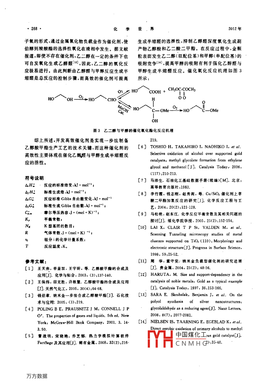 乙二醇與甲醇合成乙醇酸甲酯反應的熱力學計算