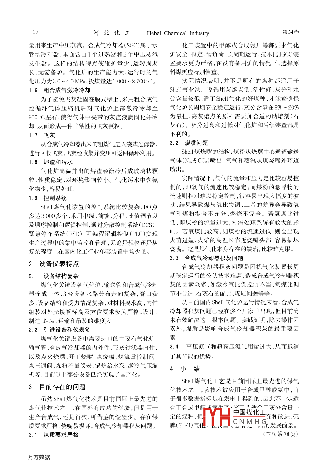 Shell煤氣化工藝特點及存在問題