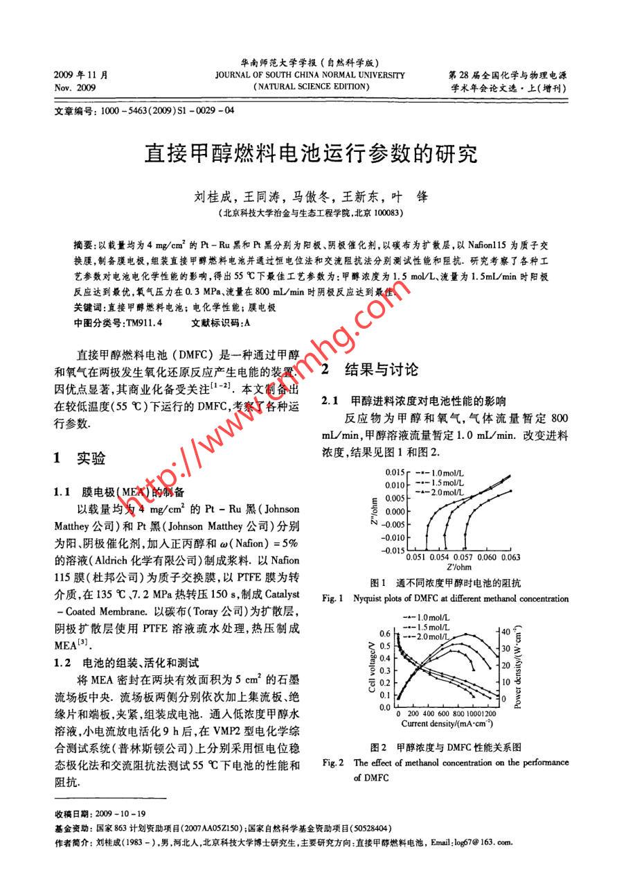 直接甲醇燃料電池運(yùn)行參數(shù)的研究