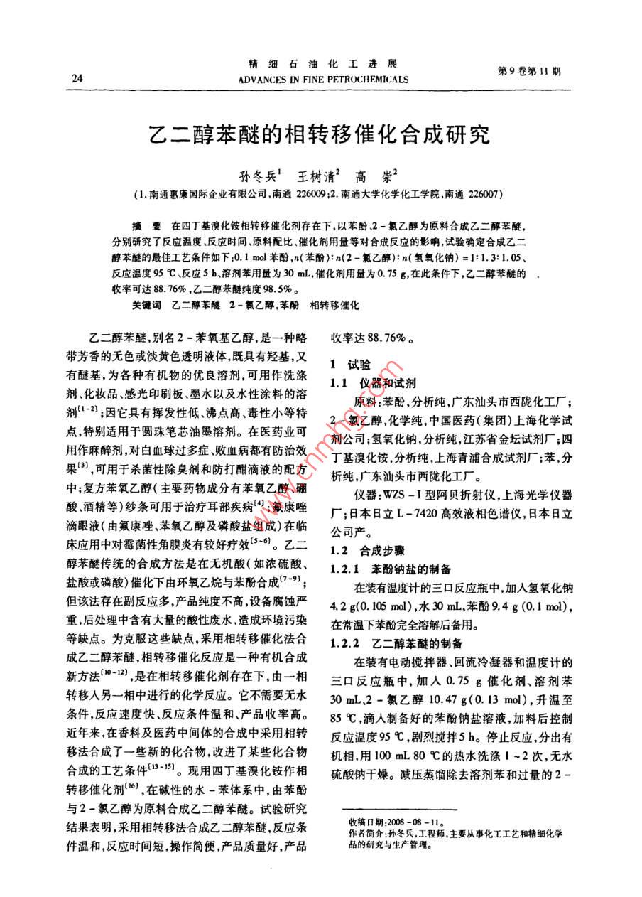 乙二醇苯醚的相轉(zhuǎn)移催化合成研究