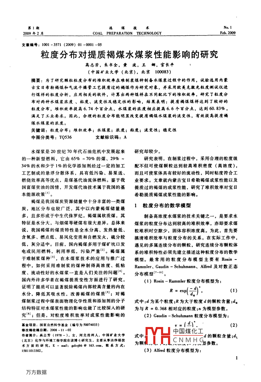 粒度分布對(duì)提質(zhì)褐煤水煤漿性能影響的研究