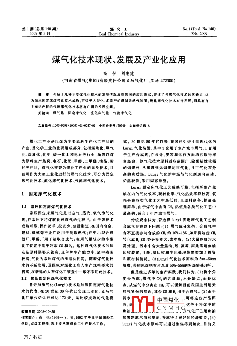煤氣化技術(shù)現(xiàn)狀、發(fā)展及產(chǎn)業(yè)化應(yīng)用