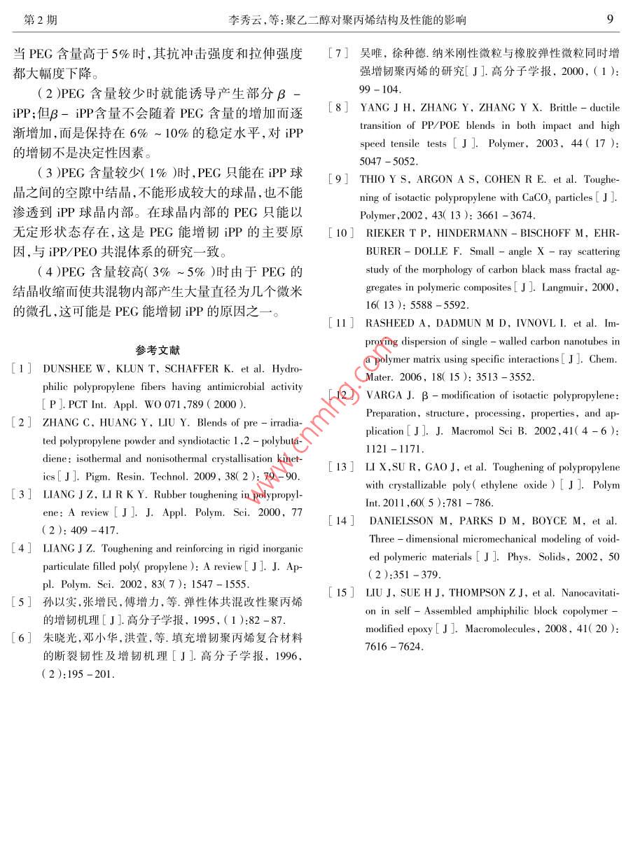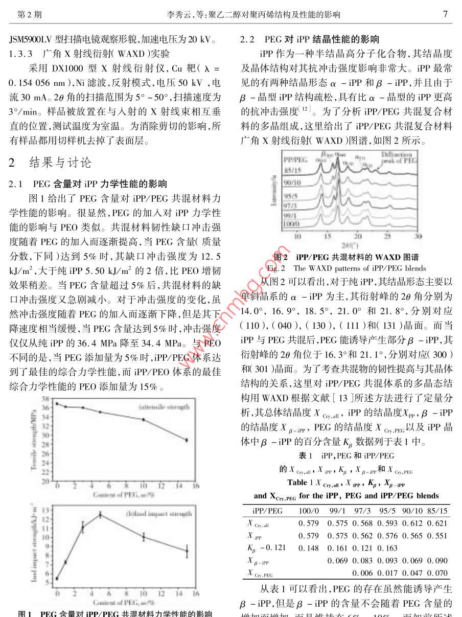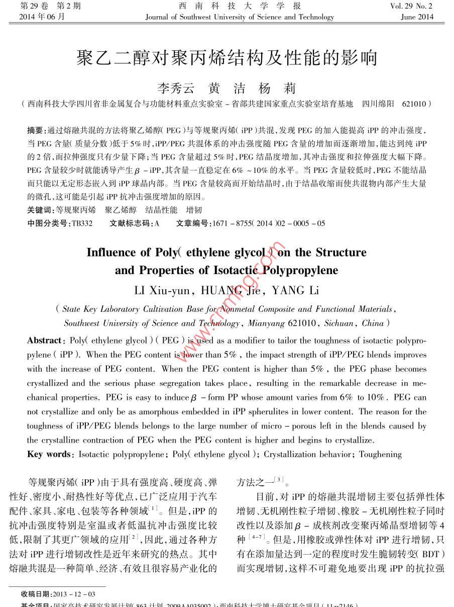 聚乙二醇對(duì)聚丙烯結(jié)構(gòu)及性能的影響