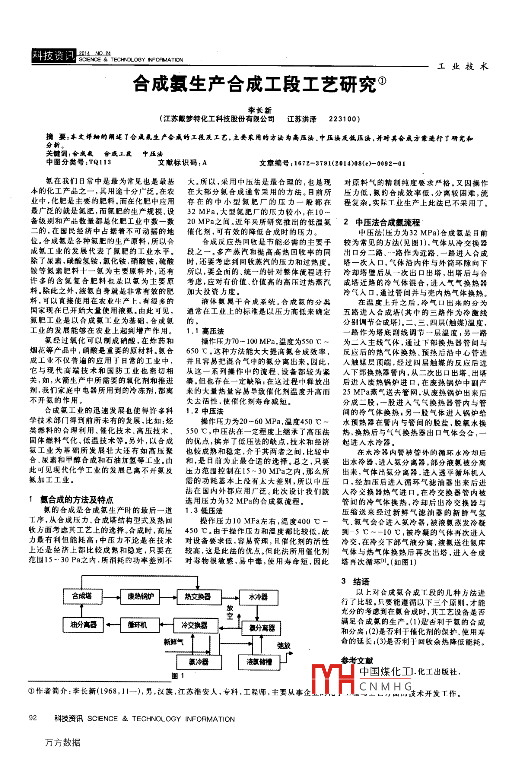 合成氨生產(chǎn)合成工段工藝研究