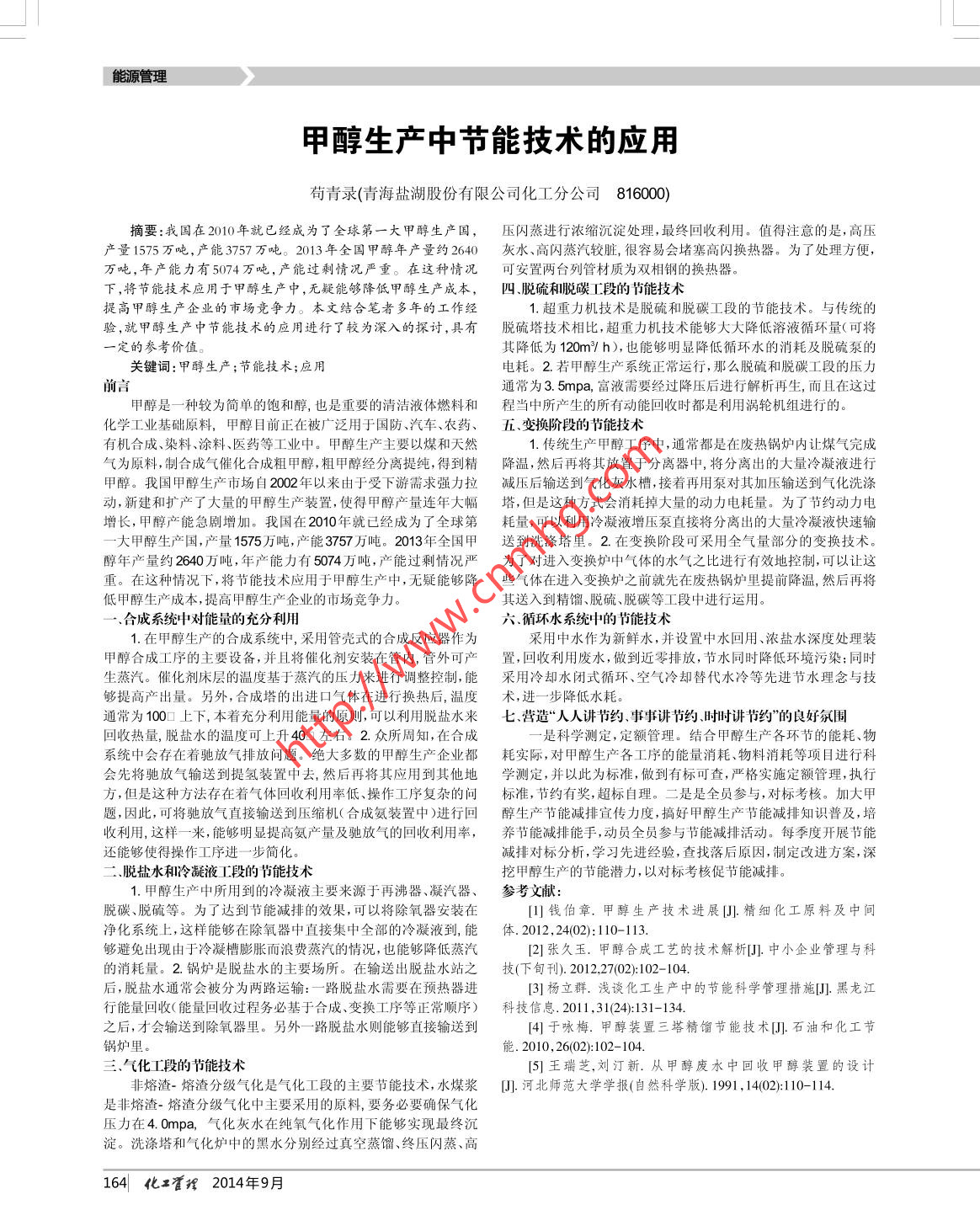 甲醇生產(chǎn)中節(jié)能技術(shù)的應(yīng)用