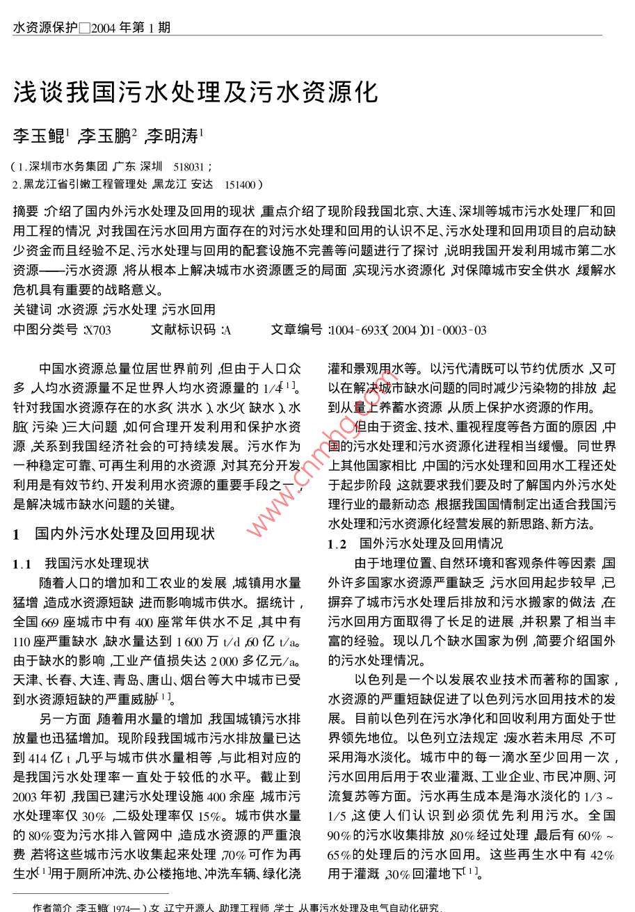 淺談我國污水處理及污水資源化