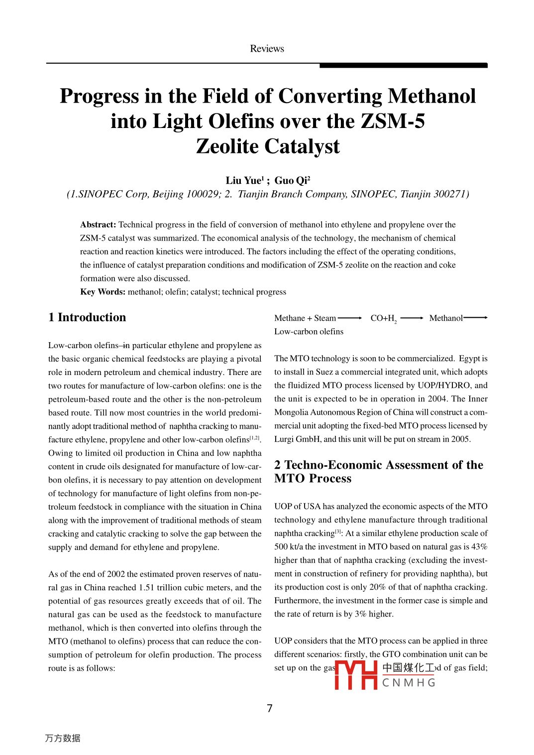 甲醇制芳烴研究進(jìn)展 2020-07-08