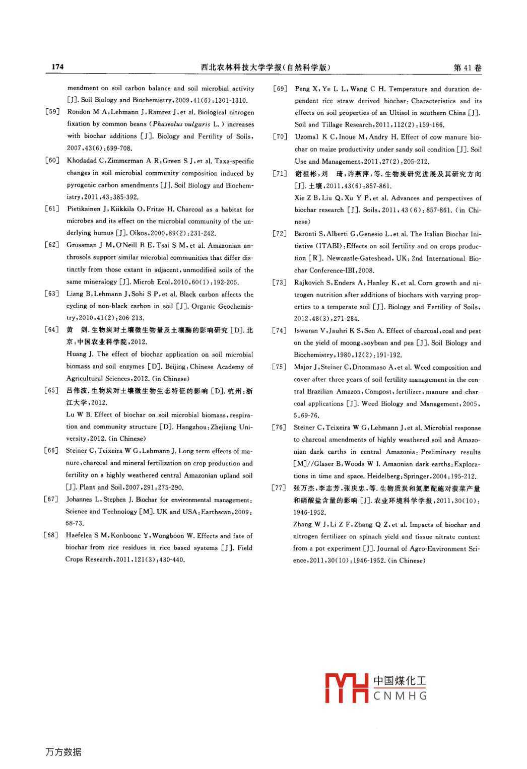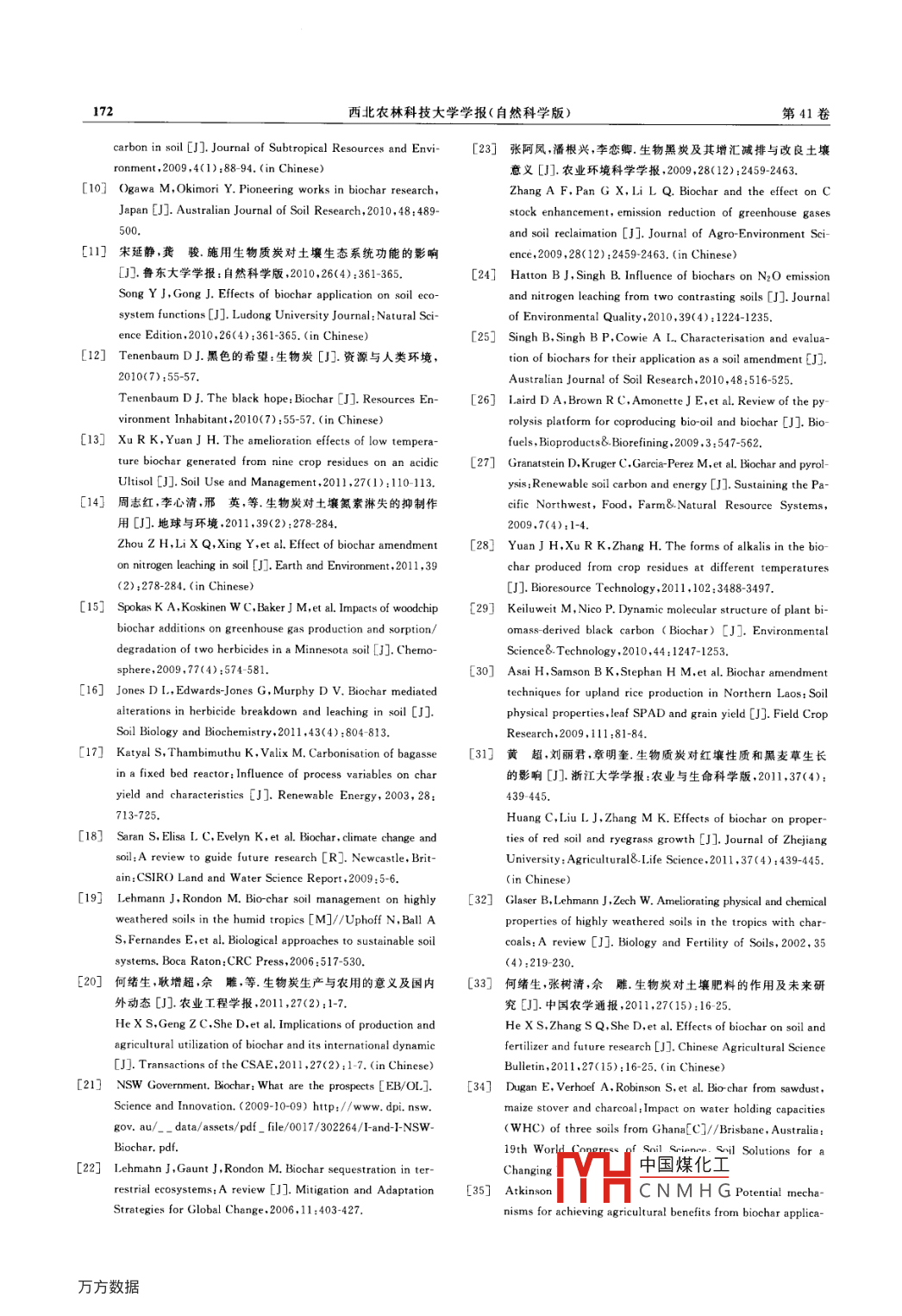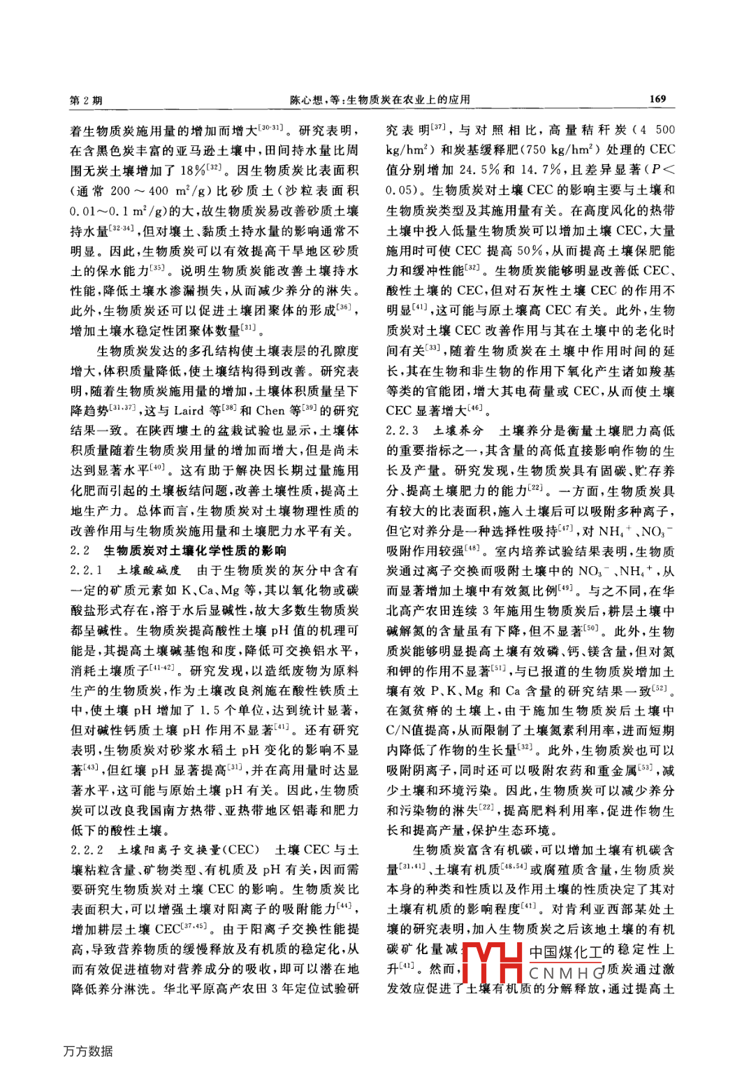第41卷第2期西北農(nóng)林科技大學(xué)學(xué)報(bào)(自然科學(xué)版)VoL 41 No. 22013年2月Journal of Northwest A&F University(Nat. Sci. Ed.)Feb.2013網(wǎng)絡(luò)出版時(shí)間:201301-1416:13網(wǎng)絡(luò)出版地址http://www.cnkinet/kcms/detail/61.1390.s.20130114.1613.015.html生物厲炭在農(nóng)業(yè)上的應(yīng)用陳心想,耿增超(西北農(nóng)林科技大學(xué)資源環(huán)境學(xué)院陜西楊凌712100)[摘要]生物質(zhì)炭是由生物質(zhì)在完全或部分缺氧的條件下經(jīng)過熱裂解、炭化產(chǎn)生的一類高度芳香化、難溶性的固態(tài)物質(zhì)。近年來,生物質(zhì)炭作為土壤改良劑、肥料緩釋載體在農(nóng)業(yè)上的應(yīng)用越來越廣泛。為促進(jìn)生物質(zhì)炭在農(nóng)業(yè)上的研究及應(yīng)用,從生物質(zhì)炭性質(zhì)的影響因素,生物質(zhì)炭對土壤物理性質(zhì)、化學(xué)性質(zhì)和微生物的影響,以及生物質(zhì)炭對作物生長和產(chǎn)量的影響等方面進(jìn)行了闡述和分析,并提出未來生物質(zhì)炭在農(nóng)業(yè)應(yīng)用方面的研究方向。[關(guān)鍵詞]生物質(zhì)炭;影響因素;土壤性質(zhì);作物生長[中圖分類號]S156.2[文獻(xiàn)標(biāo)志碼]A[文章編號]1671-9387(2013)02-0167-08Application of biochar in agricultureCHEN Xin-xiang, GENG Zeng-chaoCollege of Resources and Environment, Northwest A&F University, Yangling, Shaanxi 712100, China)Abstract: Biochar is an insoluble solid matter with high aromatization produced by biomass pyrolysisin completely or partially hypoxic conditions. In recent years, biochar is widely used in agriculture as a soilamendment and controlled-release carrier for fertilizers. In order to boost the study and utilization of bio-char in agriculture, this study summarized the factors that affect properties of biochar and its effects on soilohysical and chemical properties, amount of microorganisms in soil, and growth and yields of crops. The fu-ture research issues were also suggesteKey words: biochar; influence factors; soil properties; crop growth我國是一個(gè)農(nóng)業(yè)大國,年產(chǎn)作物秸稈8×108t來,用生物質(zhì)熱裂解生產(chǎn)生物質(zhì)炭已成為農(nóng)業(yè)研究以上,而以作物秸稈為主的廣泛存在的生物質(zhì)的熱點(diǎn)之一,而且由于在生產(chǎn)過程中消耗了大量生( biomass)是制備生物質(zhì)炭( biochar)的主要原料。物質(zhì)資源,因此生物質(zhì)炭有助于我國龐大的秸稈資生物質(zhì)炭是由生物質(zhì)在完全或部分缺氧的條件下經(jīng)源的有效利用。熱裂解、炭化產(chǎn)生的一類高度芳香化、難溶性的固態(tài)目前,全球?qū)ι镔|(zhì)炭科學(xué)研究的重視,源于對物質(zhì)2。根據(jù)原料的來源不同,生物質(zhì)炭分為木炭、巴西亞馬遜盆地中部黑土( Terra preta de indio)的竹炭、秸稈炭、稻殼炭、動(dòng)物糞便炭等4。通常認(rèn)認(rèn)識(shí)黑土是古人類刀耕火種形成的一種特殊的肥為,生物質(zhì)炭屬于黑炭( black carbon)范疇的一種,沃土壤,至今仍是全球最肥沃的土壤之一。然而,在而黑炭包含了生物質(zhì)略微炭化到燃燒后黑煙顆粒的世紀(jì)80年代以后,全球?qū)ι镔|(zhì)炭的性質(zhì),以及炭化物質(zhì),其對全球碳循環(huán)所起作用較大5。近年將其用作土壤改良劑及固碳劑的研究才相繼展開。[收稿日期]2012-05-31[基金項(xiàng)目]林業(yè)局“948”項(xiàng)目“林果木生物質(zhì)綜合轉(zhuǎn)化技術(shù)引進(jìn)”(2009464);農(nóng)業(yè)部“948”項(xiàng)目“生物炭技術(shù)引進(jìn)及消化”(2010Z19);陜西省自然科學(xué)基礎(chǔ)研究計(jì)劃項(xiàng)目(2010JM5004);陜西省攻及施用技術(shù)研究”(2010K02-12-1)中國煤化工[作者簡介]陳心想(1986-),女,山東臨沂人,在讀碩土,主要從事廢棄生物質(zhì)肥E-mail:xinxiang20073975@163.comCNMHG[通信作者]耿增超(1963-),男,陜西韓城人,教授,主要從事森林土壤及農(nóng)業(yè)廢棄物轉(zhuǎn)化研究。Emal; gengzengchao@126l68西北農(nóng)林科技大學(xué)學(xué)報(bào)(自然科學(xué)版)第41卷目前,生物質(zhì)炭作為一項(xiàng)低碳產(chǎn)品常被用作碳匯劑,性質(zhì)2)。如闊葉樹和針葉樹的凋落物經(jīng)高溫?zé)峤鉃闇p緩全球氣候變化做出了重要貢獻(xiàn),而且為廢制成的生物質(zhì)炭,灰分含量分別為6.38%和棄生物質(zhì)利用、生物能源生產(chǎn)、土壤改良培肥、肥料1.48%,闊葉樹凋落物制備的生物質(zhì)炭中的養(yǎng)分如創(chuàng)新、溫室氣體減排等提出了綜合解決方案,從而引Ca、Mg、K含量要比針葉樹的高,將二者施入土壤起了人們極大的興趣。后改善土壤pH和陽離子交換量的效果不同23。國內(nèi)外在生物質(zhì)炭對土壤肥力和作物生長的影生物質(zhì)原料還影響生物質(zhì)炭的pH。由于畜禽糞便響方面開展了廣泛研究,并取得許多進(jìn)展1,已經(jīng)灰分含量往往很高,因此制成的生物質(zhì)炭pH比木擴(kuò)展到了生態(tài)系統(tǒng)高度。生物質(zhì)炭常被用作土炭或秸稈炭的高,400℃下家禽糞便炭的pH為壤改良劑213,可以改善土壤性質(zhì),促進(jìn)養(yǎng)分吸收,9.22,而木炭pH為7.6721。生物質(zhì)炭還具有發(fā)從而提高作物產(chǎn)量,滿足我國對糧食不斷增長的消達(dá)的孔隙結(jié)構(gòu)和巨大的比表面積,其大小與生物質(zhì)費(fèi)需求。生物質(zhì)炭施入土壤后不僅能夠提高養(yǎng)分利原料的種類有關(guān)。據(jù)日本學(xué)者報(bào)道,采用850℃將用率