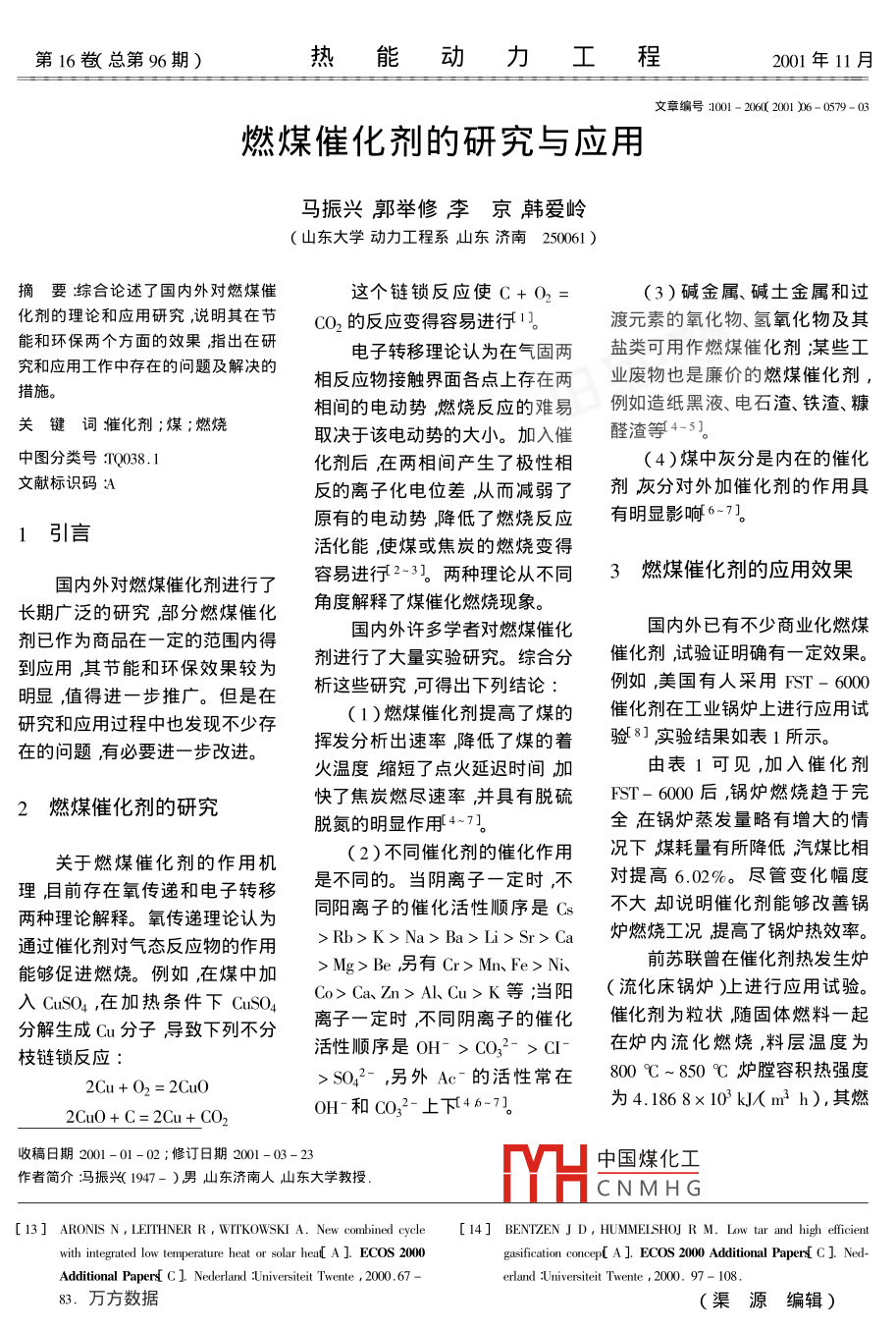 第16卷(總第96期)熱動(dòng)力工程2001年11月專題綜述文章編號:1001- 2060[ 2001 )6 - 0575 -05整體煤氣化聯(lián)合循環(huán)(IGCC)技術(shù)的發(fā)展和應(yīng)用李現(xiàn)勇,肖云漢蔡睿賢(中國科學(xué)院工程熱物理研究所北京100080 )摘要:針對整體煤氣化聯(lián)合循環(huán)的容量比較大,-般可達(dá)到300的合成氣凈化技術(shù)造成了能源利(IGCC系統(tǒng)商業(yè)化過程中所遇到的主~600 MW ;耗水量比較少,比常用的浪費(fèi);IGCC實(shí)現(xiàn)了對原料的要問題,作者闡述了目前世界上為解規(guī)汽輪機(jī)電站少30% ~50%這初步綜合利用但綜合利用的程決這些問題在降低成本和關(guān)鍵技術(shù)的發(fā)展方面所采取的主要手段及其進(jìn).對廣大缺水地區(qū)十分有利,,也適度不高尤其是電力市場的自由展同時(shí)還分析了IGCC在我國可能應(yīng)用于坑口電站的建設(shè),有助于實(shí)化、相對廉價(jià)的燃?xì)庹羝?lián)合循現(xiàn)能源生產(chǎn)布局的合理優(yōu)化。因環(huán)以及相對低的CO2排放,導(dǎo)致用的具體途徑。關(guān). 鍵詞:整體煤氣化聯(lián)合循環(huán)此ICCC技術(shù)發(fā)展很快,現(xiàn)在世了IGCC技術(shù)商業(yè)化步伐的緩( ICCC);降低成本;關(guān)鍵界上有70多座ICCC電站計(jì)劃在慢。建或已成功運(yùn)行,-批IGCC示技術(shù)的發(fā)展范電站的建設(shè)和成功運(yùn)行,驗(yàn)證2 ICCC 技術(shù)的發(fā)展中圖分類號:TIM611.3了IGCC技術(shù)上的可行性、環(huán)保文獻(xiàn)標(biāo)識碼A性能的優(yōu)越性和能量利用的高效世界各國的能源生產(chǎn)廠商和性增強(qiáng)了人們對IcCC技術(shù)的研究機(jī)構(gòu)以降低運(yùn)行成本、滿足1概述信心和期望。日益苛刻的環(huán)境法規(guī)的排放要我國能源可持續(xù)發(fā)展將長期理論上IGCC系統(tǒng)可以分為求、增強(qiáng)ICCC的市場競爭力、加.表現(xiàn)為能源供應(yīng)安全、環(huán)境保護(hù)三個(gè)相對獨(dú)立的部分(1 )煤氣速IGCC的商業(yè)化進(jìn)程為目的和經(jīng)濟(jì)發(fā)展的同時(shí)實(shí)現(xiàn),這就意(或合成氣制備子系統(tǒng)(2 )聯(lián)合在解決阻礙IGCC商業(yè)化進(jìn)展的味著高效、潔凈、經(jīng)濟(jì)的能源系統(tǒng)循環(huán)子系統(tǒng)ζ 3)空氣分離子系上述關(guān)鍵問題方面取得了不同程是我國能源的重大需求。整體煤統(tǒng)。組成IGCC各個(gè)子系統(tǒng)的技度的進(jìn)展。氣化聯(lián)合循環(huán)( Integrated Gasifica-術(shù)均有成熟技術(shù),但是第一座現(xiàn)在降低投資和運(yùn)行成本增tion Combined Cycle簡稱IGCC )作代中試型ICCC電站-美國的冷強(qiáng)IGCC技術(shù)的市場競爭力方為一種清潔、高效的潔凈煤發(fā)電水Cool Water )電站直到1987年面:技術(shù),受到了普遍重視。同其它才開始成功運(yùn)轉(zhuǎn)這主要是因?yàn)?.1 與其它多聯(lián)產(chǎn)技術(shù)相結(jié)合,能源利用技術(shù)相比較,ICCC具有IGCC存在著以下需要解決的關(guān)擴(kuò)展IGCC技術(shù)的應(yīng)用空間以下特點(diǎn):效率比較高,目前鍵問題(1)IGCC技術(shù)的投資成隨著運(yùn)行經(jīng)驗(yàn)的不斷積累和ICCC系統(tǒng)的效率已經(jīng)達(dá)到42%本過高 ,這也是影響IGCC技術(shù)改進(jìn)以及大多數(shù)示范項(xiàng)目的良~45% ,將會突破 50% ;具有良在我國應(yīng)用的主要障礙( 2影響好運(yùn)營,進(jìn)一步推動(dòng)了ICCC的好的環(huán)保性能能夠滿足日益嚴(yán)IGCC系統(tǒng)性能的關(guān)鍵技術(shù)尚不廣泛應(yīng)用。建設(shè)商業(yè)化電站在經(jīng)格的污染物排放指標(biāo)要求;ICCC過關(guān)。 例如盡管可供選用的氣濟(jì)方面的考慮逐漸地從單一的動(dòng)實(shí)現(xiàn)了對原料煤炭初步的綜合化技術(shù)種類繁多,但 是中國煤化工慮燃料成本比價(jià)”和利用為實(shí)現(xiàn)對原料的有效利用成熟的氣化技術(shù)仍無定MHCNMHG這使得ICCC的運(yùn)行提供了大的發(fā)展空間;ICCC機(jī)組氣的凈化技術(shù)還有待改進(jìn)現(xiàn)有和設(shè)計(jì)經(jīng)驗(yàn)不斷地?cái)U(kuò)展到其它領(lǐng)收稿日期2001-02- 16;修訂日期2001-04-20基金項(xiàng)目國家重點(diǎn)基礎(chǔ)研究發(fā)展規(guī)劃基金資助項(xiàng)目( 199902301 )作者簡介李現(xiàn)勇( 1975 - )男河南長葛人中科院工程熱物理研究所博士研究生.576●熱能動(dòng)力工程2001年域和多聯(lián)產(chǎn)技術(shù)相結(jié)合,從而逐新的空分技術(shù)提高空分系統(tǒng)等運(yùn)用 超結(jié)構(gòu)理論等并和先進(jìn)的優(yōu)步提高對原料的綜合利用度,有耗能 部件的效率,簡化IGCC系化算法等手段相結(jié)合采用流程效地提高經(jīng)濟(jì)效益,降低投資和運(yùn)行成本,使得IGCC的成本問co,重質(zhì)油合成陂租器」題不是特別突出。t氧氣華干也化隆著一以ICCC技術(shù)為基礎(chǔ)并結(jié)合日氧化劑制聯(lián)合循環(huán)相應(yīng)的獨(dú)特處理過程,IGCC技術(shù)備可以衍生出許多不同的新型整體“灰渣動(dòng)力自過程/動(dòng)力工廠解決方案。這些IRCC:減少C02樣放IGFT/Methanol:強(qiáng)化IGOC的經(jīng)濟(jì)性新的方案可以采用不同的原料( -般都是低價(jià)燃料),并生產(chǎn)不圖1 IRCC 和IGFT/Methanol方案同產(chǎn)品產(chǎn)生良好的經(jīng)濟(jì)效益和環(huán)境效益和傳統(tǒng)的技術(shù)相比具煤一-預(yù)處理]t氣