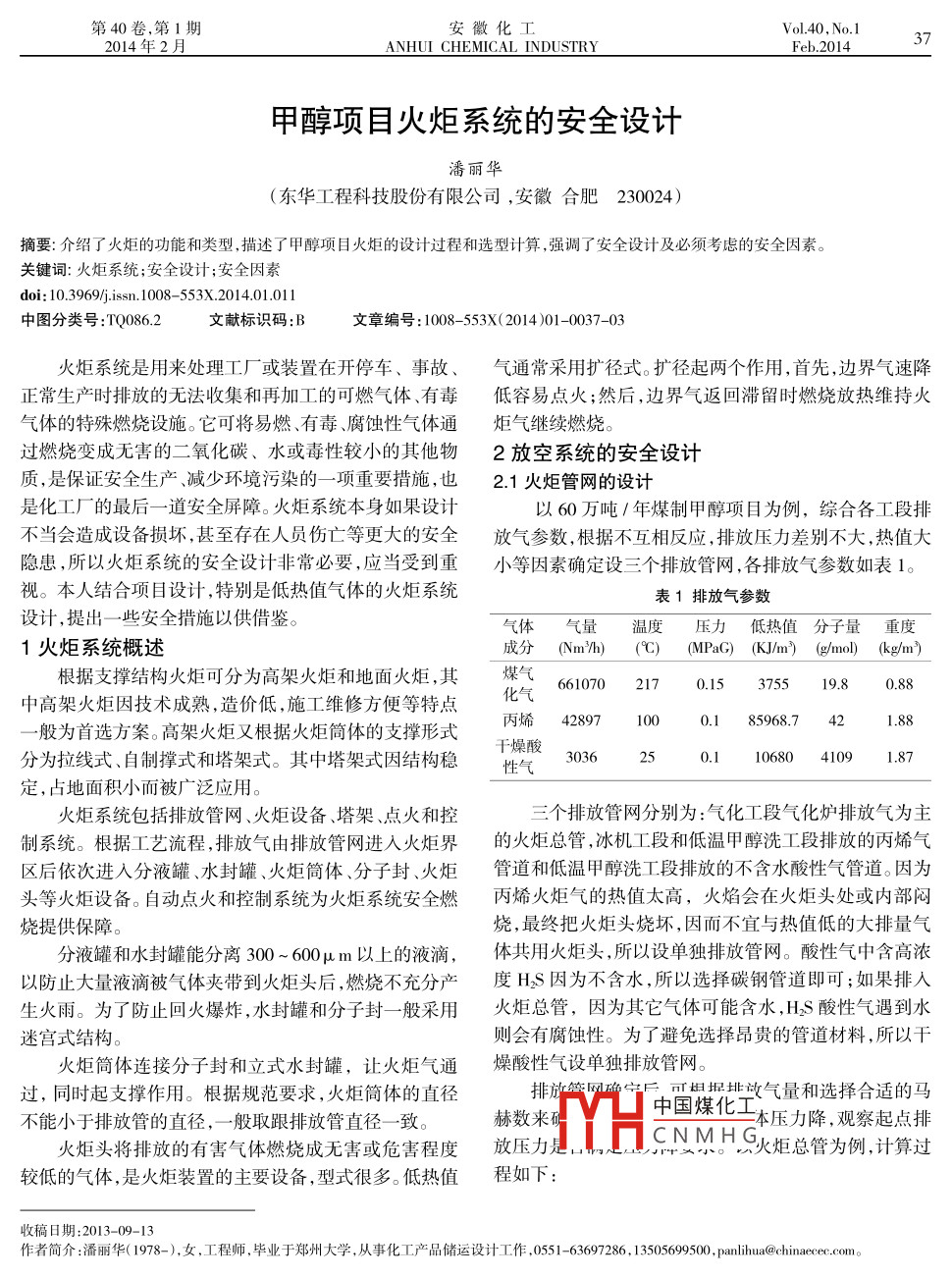 甲醇項(xiàng)目火炬系統(tǒng)的安全設(shè)計(jì)