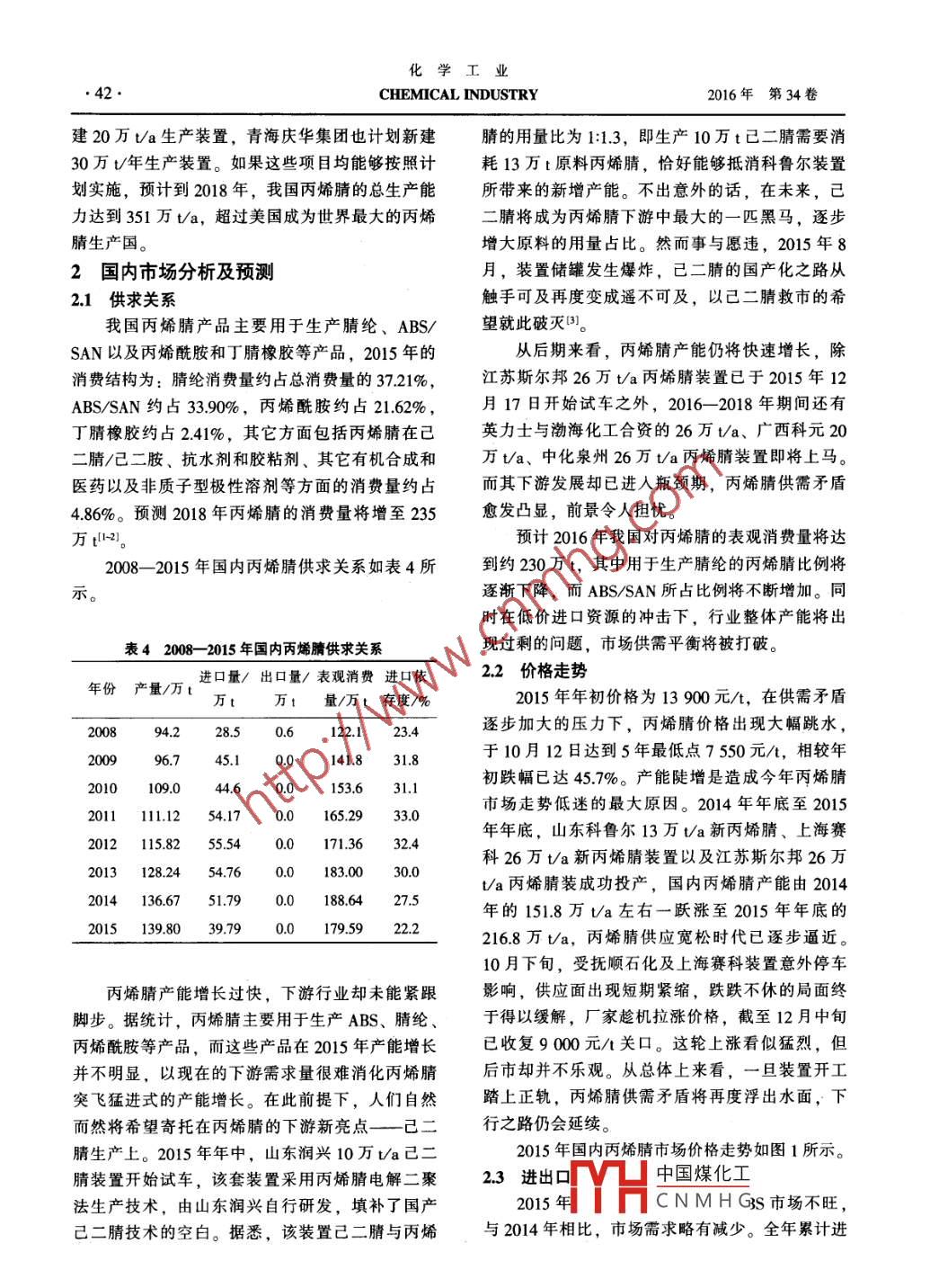 2015年丙烯腈技術(shù)、生產(chǎn)與市場(chǎng) 2015年丙烯腈技術(shù)、生產(chǎn)與市場(chǎng)