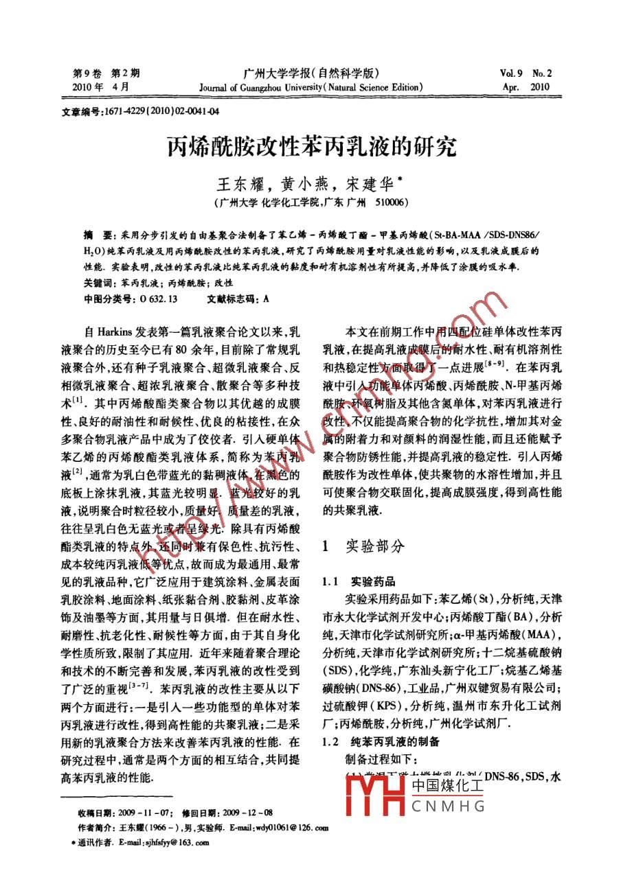 丙烯酰胺改性苯丙乳液的研究