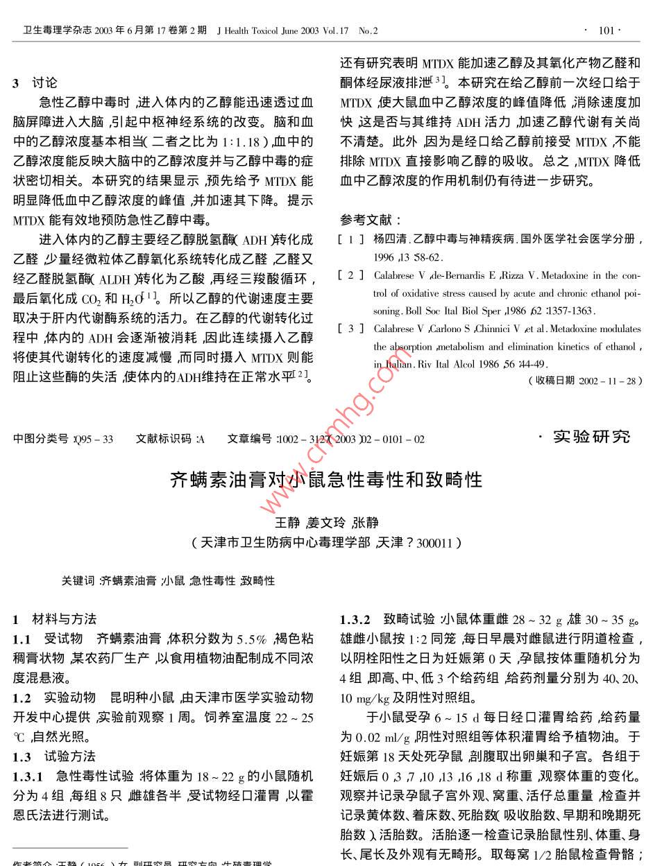 - 期刊名字:衛(wèi)生毒理學(xué)雜志