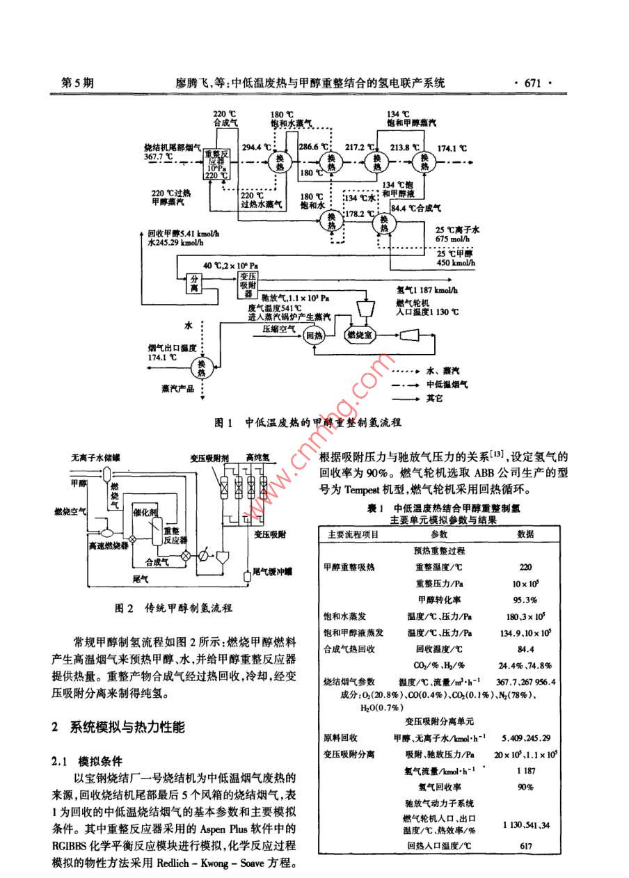 中低溫廢熱與甲醇重整結(jié)合的氫電聯(lián)產(chǎn)系統(tǒng)