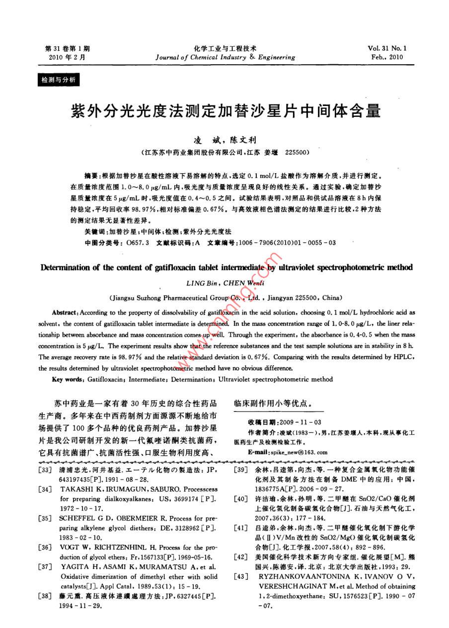 - 期刊名字:化學(xué)工業(yè)與工程技術(shù)