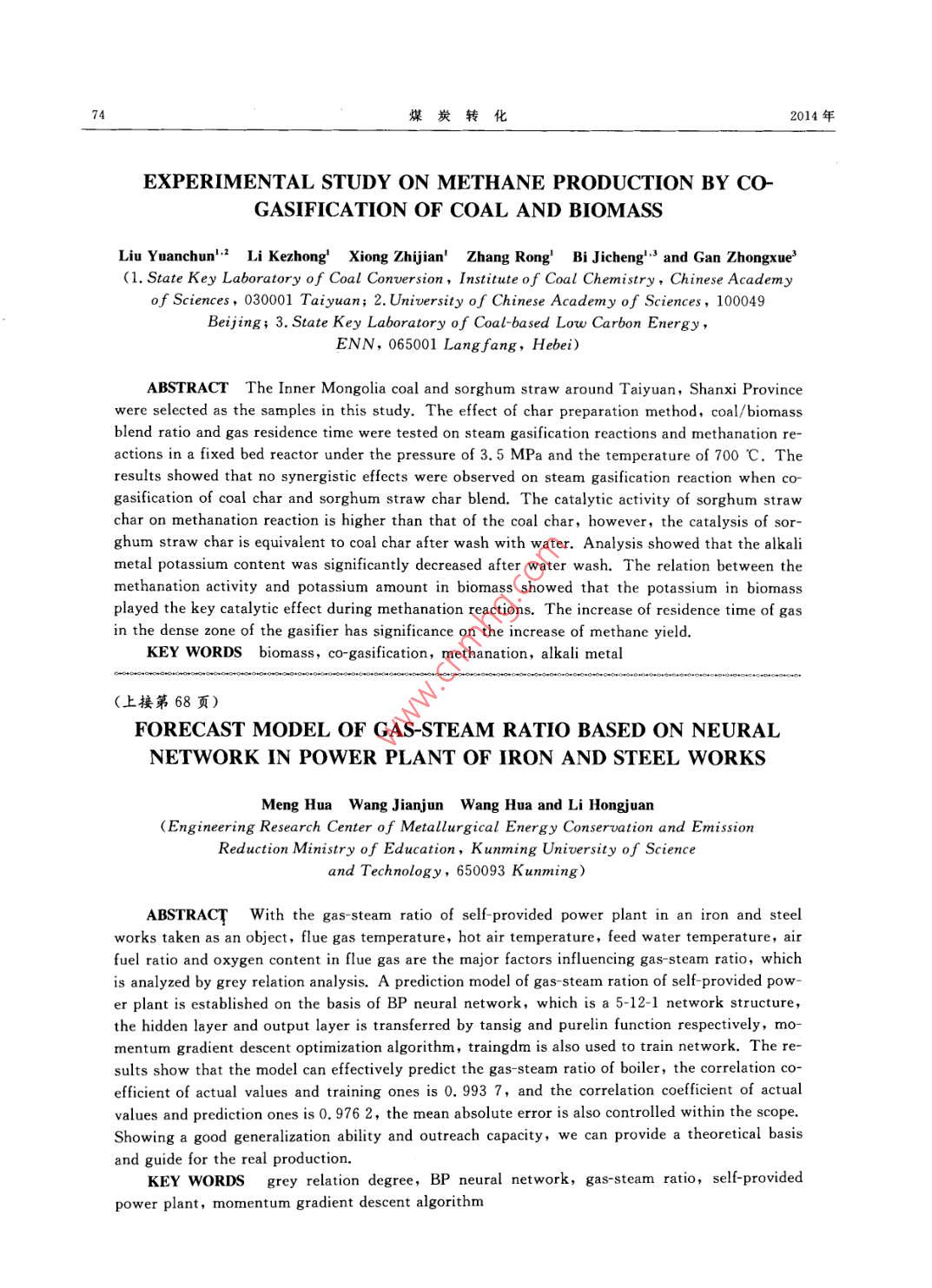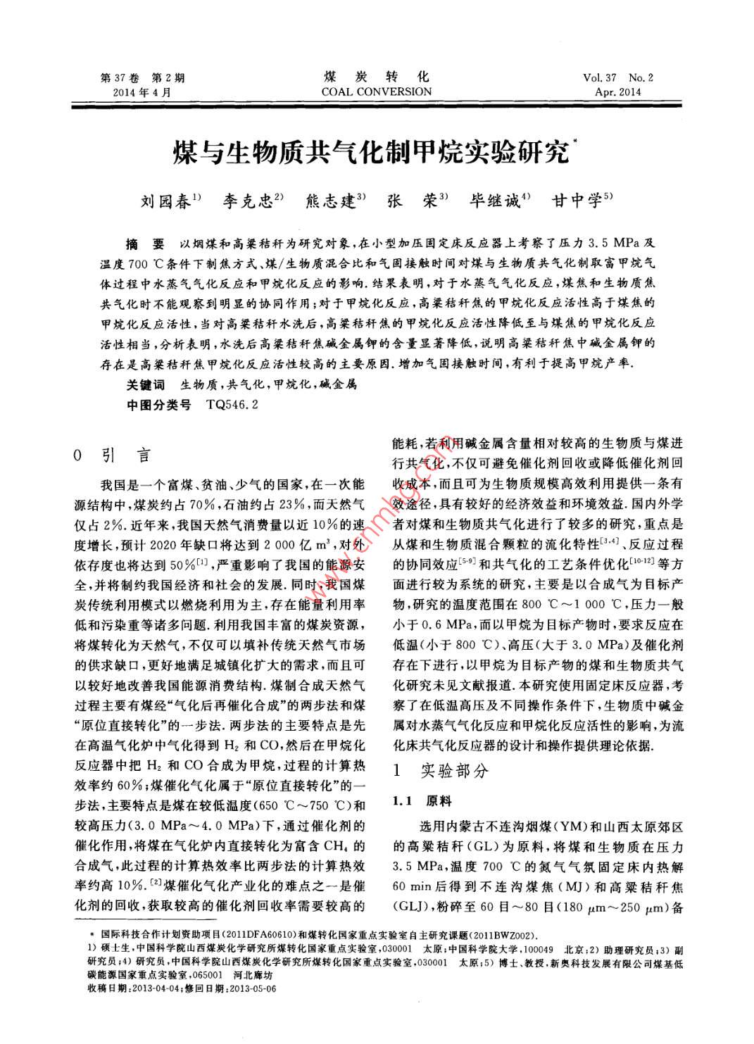 - 期刊名字:煤炭轉(zhuǎn)化