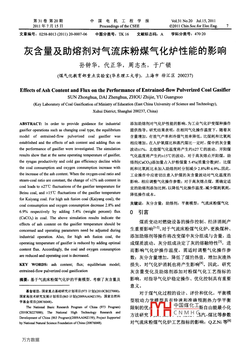 灰含量及助熔劑對氣流床粉煤氣化爐性能的影響
