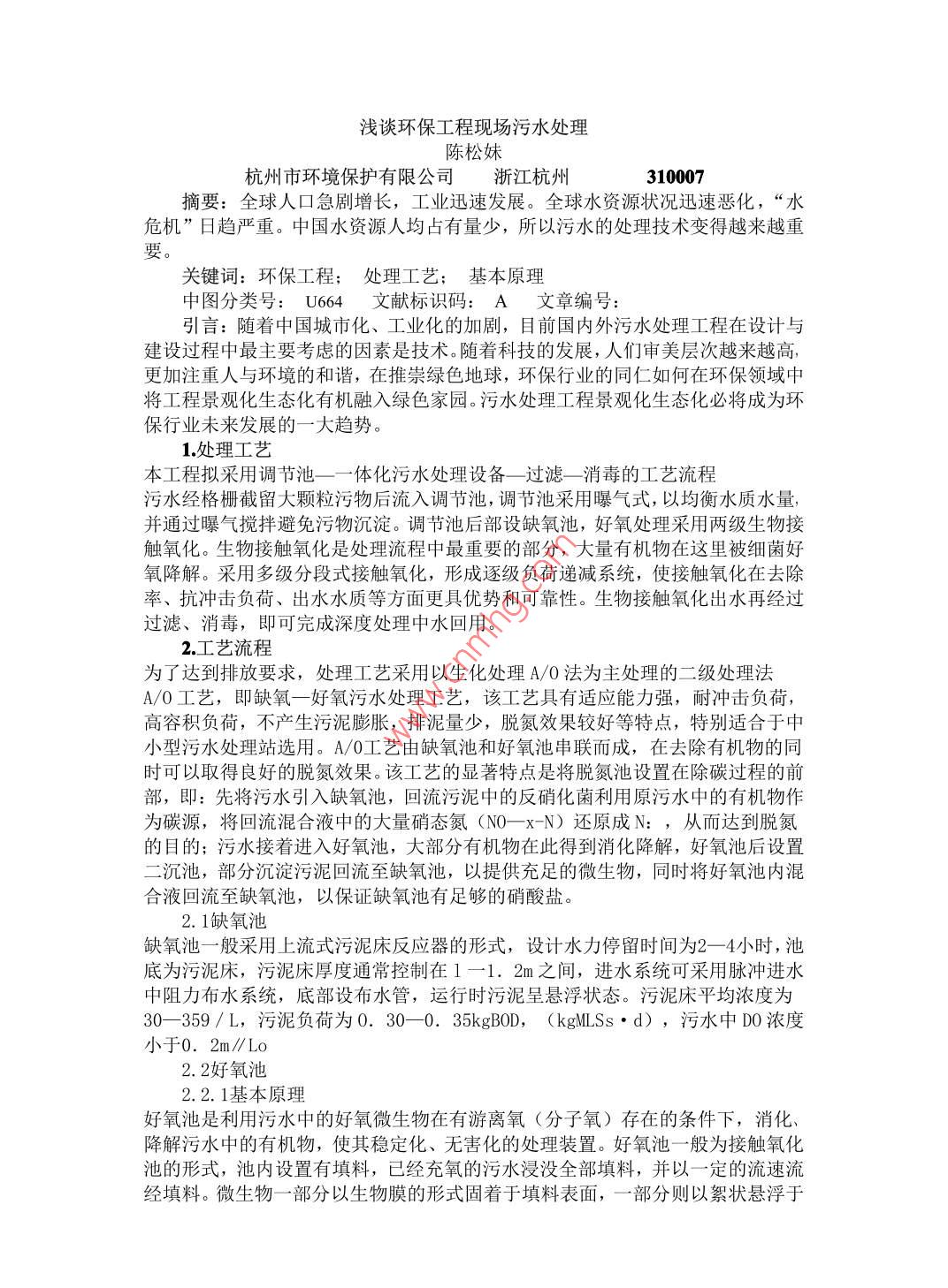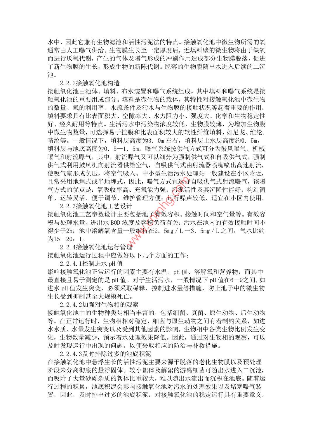淺談環(huán)保工程現(xiàn)場污水處理陳松妹杭州市環(huán)境保護(hù)有限公司浙江杭州310007摘要:全球人口急劇增長,工業(yè)迅速發(fā)展。全球水資源狀況迅速惡化,“水危機(jī)”日趨嚴(yán)重。中國水資源人均占有量少,所以污水的處理技術(shù)變得越來越重關(guān)鍵詞:環(huán)保工程;處理工藝;基本原理中圖分類號:U64文獻(xiàn)標(biāo)識碼:A文章編號引言:隨著中國城市化、工業(yè)化的加劇,目前國內(nèi)外污水處理工程在設(shè)計(jì)與建設(shè)過程中最主要考慮的因素是技術(shù)。隨著科技的發(fā)展,人們審美層次越來越高更加注重人與環(huán)境的和諧,在推崇綠色地球,環(huán)保行業(yè)的同仁如何在環(huán)保領(lǐng)域中將工程景觀化生態(tài)化有機(jī)融入綠色家園。污水處理工程景觀化生態(tài)化必將成為環(huán)保行業(yè)未來發(fā)展的一大趨勢。1處理工藝本工程擬采用調(diào)節(jié)池—一體化污水處理設(shè)備—過濾—消毒的工藝流程污水經(jīng)格柵截留大顆粒污物后流λ調(diào)節(jié)池,調(diào)節(jié)池采用曝氣式,以均衡水質(zhì)水量,并通過曝氣攪拌避免污物沉淀。調(diào)節(jié)池后部設(shè)缺氧池,好氧處理采用兩級生物接觸氧化。生物接觸氧化是處理流程中最重要的部分,大量有機(jī)物在這里被細(xì)菌好氧降解。采用多級分段式接觸氧化,形成逐級負(fù)荷遞減系統(tǒng),使接觸氧化在去除率、抗沖擊負(fù)荷、出水水質(zhì)等方面更具優(yōu)勢和可靠性。生物接觸氧化出水再經(jīng)過過濾、消毒,即可完成深度處理中水回用。2.工藝流程為了達(dá)到排放要求,處理工藝采用以生化處理A0法為主處理的二級處理法A/0工藝,即缺氧一好氧污水處理工藝,該工藝具有適應(yīng)能力強(qiáng),耐沖擊負(fù)荷,高容積負(fù)荷,不產(chǎn)生污泥膨脹,排泥量少,脫氮效果較好等特點(diǎn),特別適合于中小型污水處理站選用。A/0工藝由缺氧池和好氧池串聯(lián)而成,在去除有機(jī)物的同時(shí)可以取得良好的脫氮效果。該工藝的顯著特點(diǎn)是將脫氮池設(shè)置在除碳過程的前部,即:先將污水引入缺氧池,回流污泥中的反硝化菌利用原污水中的有機(jī)物作為碳源,將回流混合液中的大量硝態(tài)氮(NOⅹ-N)還原成N:,從而達(dá)到脫氮的目的;污水接著進(jìn)入好氧池,大部分有機(jī)物在此得到消化降解,好氧池后設(shè)置二沉池,部分沉淀污泥回流至缺氧池,以提供充足的微生物,同時(shí)將好氧池內(nèi)混合液回流至缺氧池,以保證缺氧池有足夠的硝酸鹽。2.1缺氧池缺氧池一般采用上流式污泥床反應(yīng)器的形式,設(shè)計(jì)水力停留時(shí)間為2—4小時(shí),池底為污泥床,污泥床厚度通常控制在1一1.2m之間,進(jìn)水系統(tǒng)可采用脈沖進(jìn)水中阻力布水系統(tǒng),底部設(shè)布水管,運(yùn)行時(shí)污泥呈懸浮狀態(tài)。污泥床平均濃度為30359/L,污泥負(fù)荷為0.30—0.35 koBOl,( kgMLSs·d),污水中D濃度小于0.2m∥Lo2.2好氧池2.2.1基本原理好氧池是利用污水中的好氧微生物在有游離氧(分子氧)存在的條件下,消化降解污水中的有杋物,使其穩(wěn)定化、無害化的處理裝置。好氧池一般為接觸氧化池的形式,池內(nèi)設(shè)置有填料,已經(jīng)充氧的污水浸沒全部填料,并以一定的流速流經(jīng)填料。微生物一部分以生物膜的形式固著于填料表面,一部分則以絮狀懸浮于水中,因此它兼有生物濾池和活性污泥法的特點(diǎn)。接觸氧化池中微生物所需的氧通常由人工曝氣供給。生物膜生長至一定厚度后,近填料壁的微生物將由于缺氧而進(jìn)行厭氧代謝,產(chǎn)生的氣體及曝氣形成的沖刷作用造成部分生物膜脫落,促進(jìn)了新生物膜的生長,形成生物的新陳代謝。脫落的生物膜隨出水進(jìn)入后續(xù)的二沉池。2.2.2接觸氧化池構(gòu)造接觸氧化池由池體、填料、布水裝置和曝氣系統(tǒng)組成,其中填料和曝氣系統(tǒng)是接觸氧化池的重要組成部分。填料是微生物的載體,其特性對接觸氧化池中微生物的數(shù)量、氧的利用率、水流條件及污水與生物膜的接觸狀況等起著重要的作用。填料要求具有比表面積大、空隙率大、水力阻力小、強(qiáng)度大、化學(xué)和生物穩(wěn)定性好、經(jīng)久耐用等特點(diǎn)。生活污水中污染物濃度較低,生物膜較薄,為增加生物膜中微生物數(shù)量,可選擇易于掛膜和比表面積較大的軟性纖維填料,如尼龍、維綸、晴綸等。一般情況下,填料層高度為3.0m左右,填料層上水層高度約0.5m,填料層與池底髙度為0.5-1.5m。曝氣系統(tǒng)按供氣方式可分為鼓風(fēng)曝氣、機(jī)械曝氣和射流曝氣,其中,射流曝氣又可以細(xì)分為強(qiáng)制供氣式和自吸供氣式,強(qiáng)制供氣式利用鼓風(fēng)機(jī)向射流器供給空氣,自吸供氣式由射流器噴嘴噴岀高速射流,使吸氣室形成負(fù)壓,將空氣吸入。中小型生活污水處理站一般建設(shè)在小區(qū)附近,且常采用地埋式或半地埋式,因此,曝氣方式宜選擇自吸供氣式射流曝氣,該曝氣方式的優(yōu)點(diǎn)是:氧吸收率高、充氧能力強(qiáng);污泥活性及其沉降性能好;構(gòu)造簡單、運(yùn)轉(zhuǎn)靈活、便于調(diào)節(jié)、維護(hù)管理方便;運(yùn)行噪聲較低,適宜在小區(qū)內(nèi)使用2.2.3接觸氧化池工藝設(shè)計(jì)接觸氧化池工藝參數(shù)設(shè)