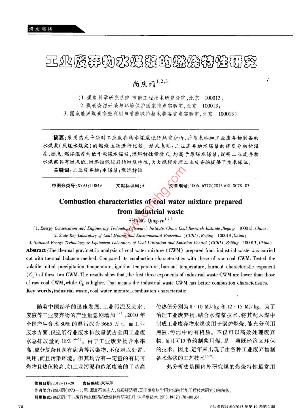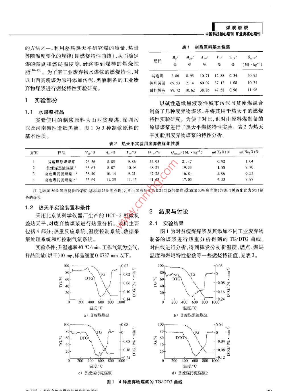 工業(yè)廢棄物水煤漿的燃燒特性研究