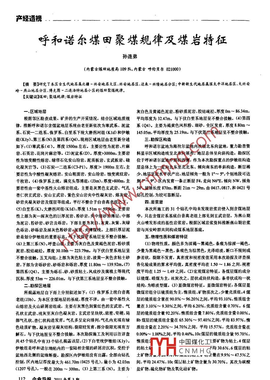 呼和諾爾煤田聚煤規(guī)律及煤巖特征