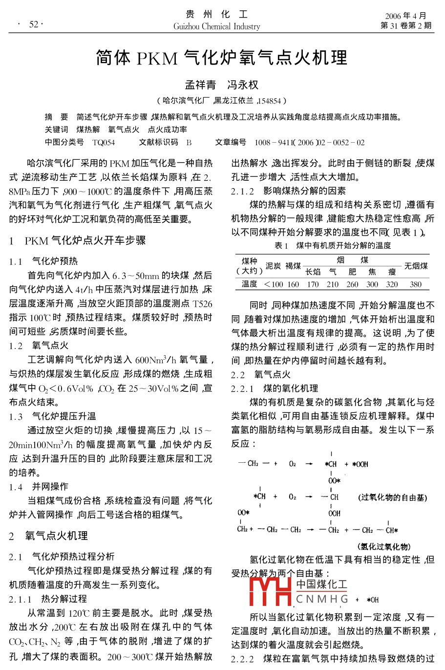簡體PKM氣化爐氧氣點(diǎn)火機(jī)理