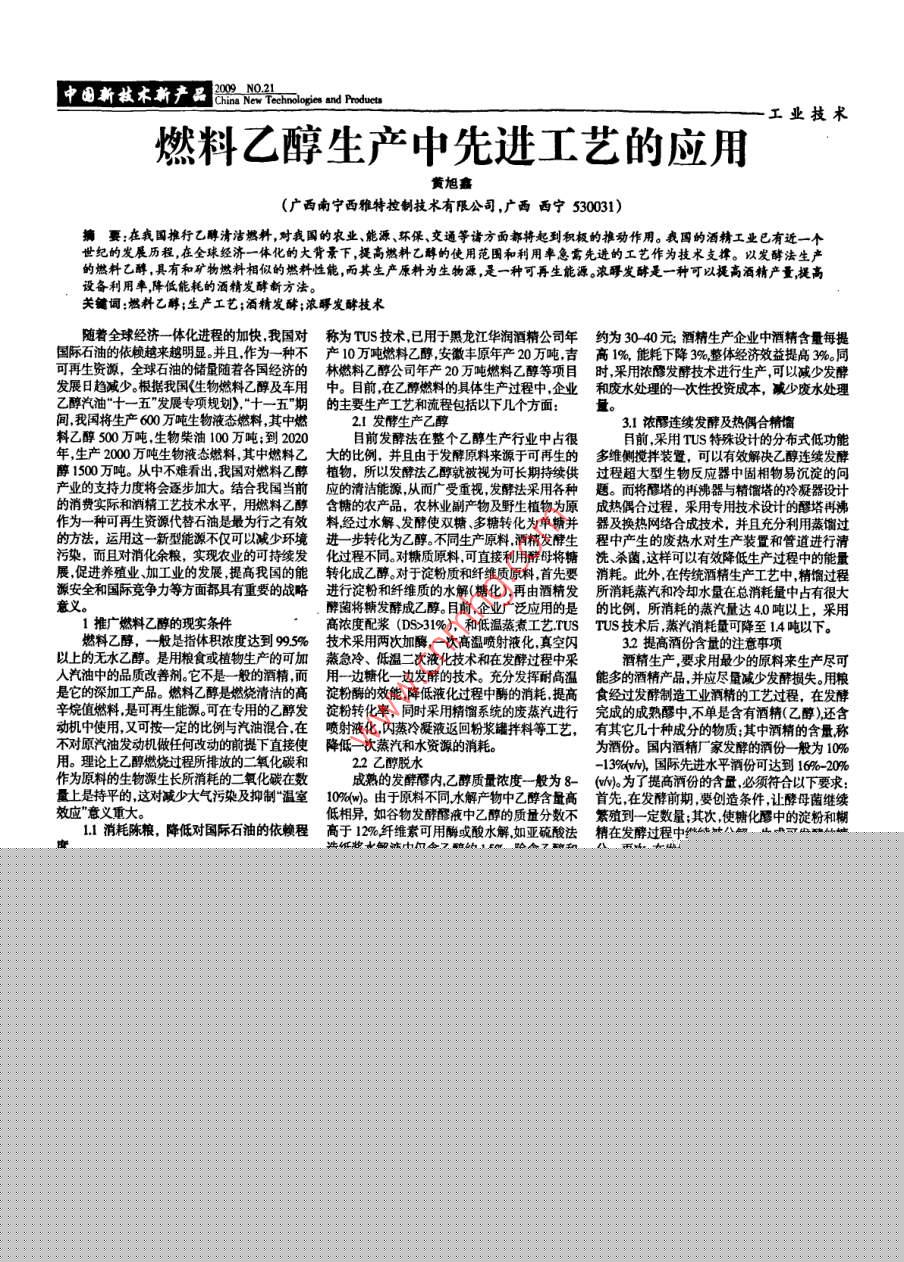 燃料乙醇生產(chǎn)中先進(jìn)工藝的應(yīng)用