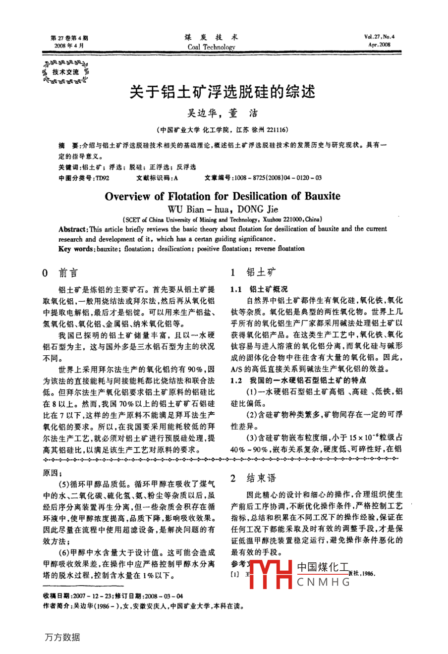 第27卷第4期煤炭技術(shù)2008年4月Coal TechnologyApr,2008國內(nèi)現(xiàn)運(yùn)行低溫甲醇洗裝置生產(chǎn)問題分析梅麗華(新能能源有限公司,內(nèi)蒙古鄂爾多斯01430摘要:在清潔能源快速發(fā)展的今天,各地先后投產(chǎn)了多套大型甲醇、二甲醚、烯烴裝置,并有多套特大型裝置處于籌建階段,這些工程大部分煤氣凈化工藝路線選擇了低溫甲醇洗工藝,本文就已投運(yùn)的煤氣凈化低溫甲醇洗裝置的生產(chǎn)運(yùn)行狀況進(jìn)行了總結(jié)分析并提出建議性解決方案關(guān)鍵詞:低溫甲醇洗裝置;運(yùn)行;措施中圖分類號:TQ223文獻(xiàn)標(biāo)識碼:A文章編號:1008-8725(2008)04-0118-02Analysis of Present Production of Low-temperature MethanolAbsorbing Device in ChinaMEI Li-hua(Xinneng Energy Co Ltd, Erduos 014300, ChinalAbstract: Today, with the rapid development of clean energy, lots of large-scale device of methanol, dimethylether,Olefin Polymerization have been put into production, some super scale device are preparing to con-struction stages, and the cool methanol absorption technology is used in coal gas purification process route ofthose engineering. The manufacture operation conditions of those device are summarize and analyzed, and somethesisKey wordsoperation; measures0前言在清潔能源快速發(fā)展的今天,各地先后投產(chǎn)了多套大型甲醇、二甲醚、烯烴裝置,并有多套特大型低溫甲醇洗工藝是由德國的林德公司( Linde)裝置處于籌建階段,這些工程大部分煤氣凈化工藝和魯奇公司(Iug)在20世紀(jì)50年代共同開發(fā)的一路線選擇了低溫甲醇洗工藝。我國對低溫甲醇洗的種有效的氣體凈化工藝,見圖1。它是采用冷甲醇研究工作起步于70年代末,經(jīng)過近20多年的努力,作為溶劑脫除酸性氣體的一種物理吸收方法。其與已取得了一定的成果。特別是大連理工大學(xué)等大?;瘜W(xué)吸收或其它物理吸收方法相比具有無可比擬的院校和科研院所經(jīng)過多年不懈努力,取得了顯著進(jìn)優(yōu)點(diǎn),近年來,低溫甲醇洗工藝在流程優(yōu)化、節(jié)能降展,設(shè)計和改造了多套的低溫甲醇洗裝置。在裝置耗、降低投資、提高裝置操作靈活性等方面在不斷的標(biāo)定、瓶頸分析、增產(chǎn)改造方案確定、減少投資方面改進(jìn)。發(fā)揮了很大的作用。心心心圖1低溫甲醇洗六塔流程1裝置問題分析及措施念,采用六塔流程,即甲醇洗滌塔、CO2解析塔、H濃縮塔、甲醇熱再生塔、甲醇水分離塔、尾氣洗滌塔現(xiàn)運(yùn)行的甲醇裝置大多遵循林德公司的設(shè)計理采用中國煤化工熱器,選擇性的CNMHG收稿日期:2007-12-14;修訂日期:2008-03-03作者介紹:梅麗華(1978-),女,哈爾濱人,助理工程師,畢業(yè)于哈爾濱化學(xué)工業(yè)學(xué)校現(xiàn)從事煤化工生產(chǎn)技術(shù)工作,E-mailmeilihua517@163.cm。第4期梅麗華:國內(nèi)現(xiàn)運(yùn)行低溫甲酵洗裝置生產(chǎn)問題分析119一步法脫硫脫碳。它具有流程短、布置緊湊的特點(diǎn),醇消耗;但由于操作經(jīng)驗的原因,這些裝置在運(yùn)行的過程中(2)廢水排放間歇進(jìn)行,排放應(yīng)選擇塔溫度高時出現(xiàn)了各種各樣的問題,本文就這些問題作一總結(jié)進(jìn)行,這樣可有效地降低甲醇消耗;并加以分析(3)經(jīng)常校對塔釜液位計,防止堵塞而造成假液1.1甲醇水分離塔操作穩(wěn)定性問題位甲醇水分離塔(見圖2)的進(jìn)料有3路(4)在塔釜加裝直通蒸汽,適當(dāng)提高塔釜溫度,①裝置進(jìn)口分離器分離下來的含水甲醇;降低甲醇消耗,防止塔底堵塞;②甲醇再生塔部分塔釜液;5)在系統(tǒng)水含量高時可適當(dāng)加大塔頂入料;③尾氣洗滌塔塔釜液。(6)盡量保證閃蒸罐來料流量的穩(wěn)定。其中②、③項物料流量較穩(wěn)定,而①項雖流量不1.3煤氣中總硫超標(biāo)問題大但因受進(jìn)裝置變換氣帶水情況及負(fù)荷波動的影無論是合成氨廠、甲醇廠,還是城市煤氣廠,都響,含CO2等氣體成分有很大的波動,設(shè)計此股物需要將煤氣中的總硫降到一定低的含量,保證合成料均被再生塔釜液加熱后進(jìn)人閃蒸罐閃蒸,再進(jìn)入工藝催化劑的使用要求或是城市煤氣標(biāo)準(zhǔn)。但在實(shí)甲醇水分離塔,人塔量由閃蒸罐上的氣相壓力自動際運(yùn)行中,有些廠家凈化氣總硫含量長期處于超標(biāo)調(diào)節(jié),當(dāng)來料負(fù)荷有大的變化時,閃蒸效果變壞,同狀態(tài),遠(yuǎn)遠(yuǎn)高于1×10°,造成后序合成工段催化劑時入塔流量和溫度都有所波動,來不及閃蒸的CO2中毒,生產(chǎn)負(fù)荷下降,嚴(yán)重時甚至停車更換觸媒,造在塔內(nèi)閃蒸,造成塔內(nèi)壓力、溫度及液位相應(yīng)波動,成不必要的損失,分析原因主要是由于各相關(guān)工段塔頂氣直接進(jìn)入再生塔,顯然對再生塔的穩(wěn)定運(yùn)行生產(chǎn)負(fù)荷波動時,由于操作經(jīng)驗的不足,沒能及時查造成影響。當(dāng)塔釜溫度也跟隨波動時,會使塔釜排找原因及時調(diào)整造成的歸納起來主要有以下幾點(diǎn)水中甲醇含量增多,造成排水不合格和甲醇的浪費(fèi)。(1)甲醇循環(huán)量小。吸收劑甲醇溶液的流量與煤如果想解決此類問題,可在設(shè)計閃蒸罐容積時,考慮氣量成正比,所以單位時間洗滌甲醇的流量越大越到負(fù)荷變化的情況,保證分離液在閃蒸罐中的停留有利于吸收煤氣中的硫化氫。在其它操作條件不變閃蒸時間,且將閃蒸罐到分離塔的液