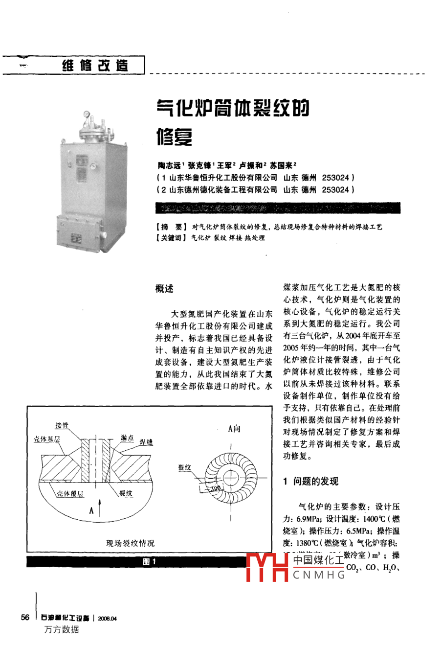 氣化爐筒體裂紋的修復(fù)