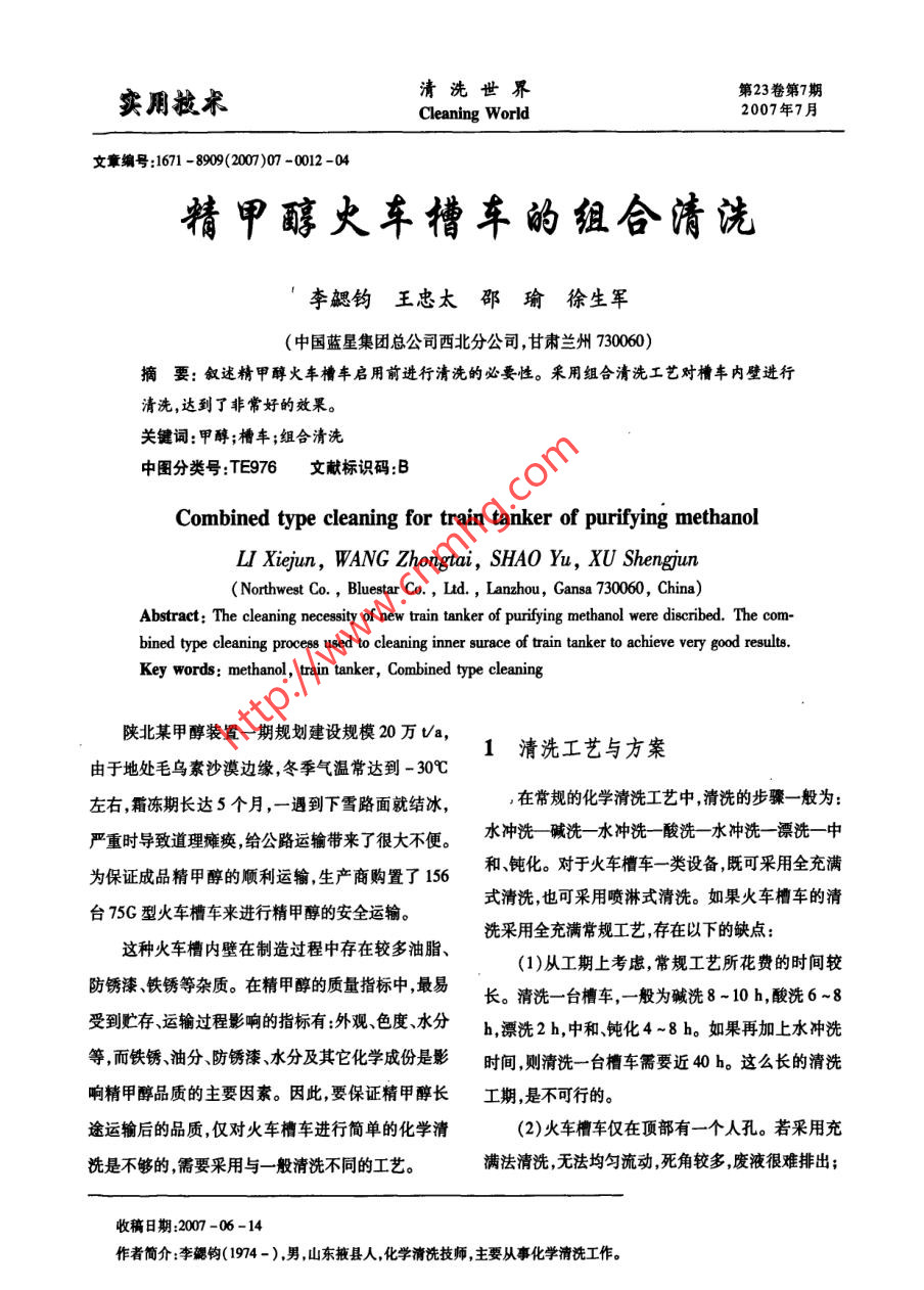 - 期刊名字:清洗世界
