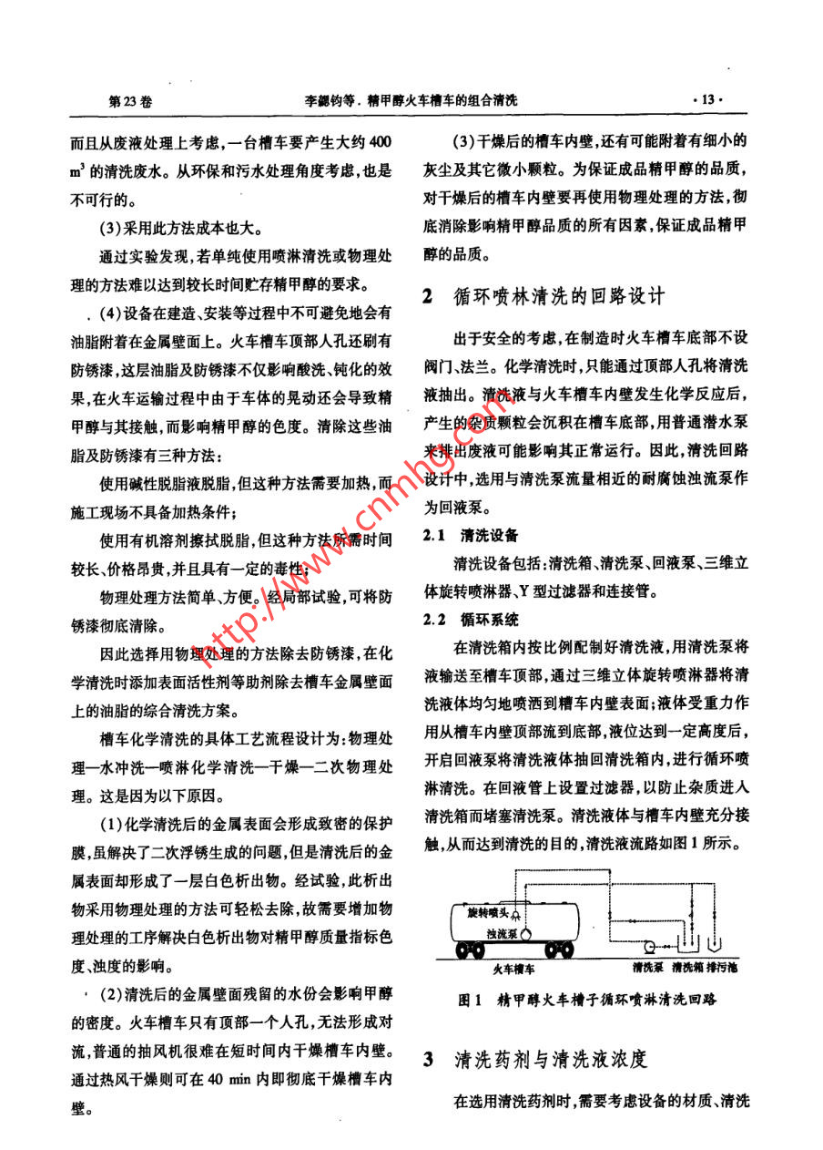 精甲醇火車槽車的組合清洗