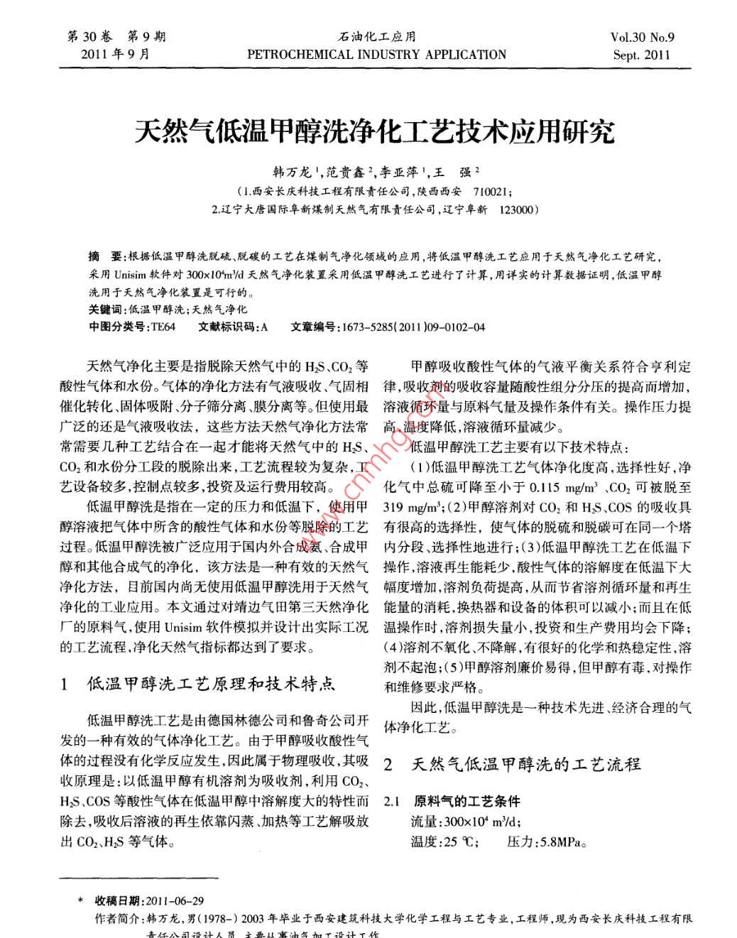 天然氣低溫甲醇洗凈化工藝技術(shù)應(yīng)用研究