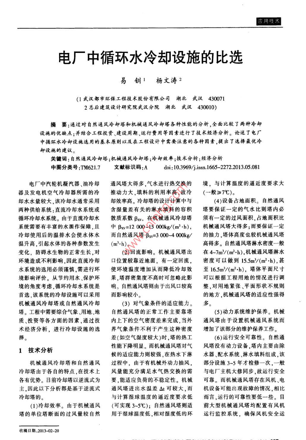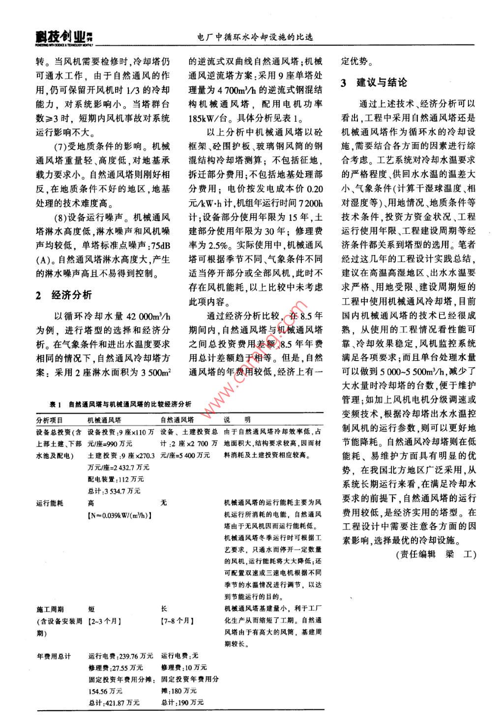 電廠中循環(huán)水冷卻設施的比選