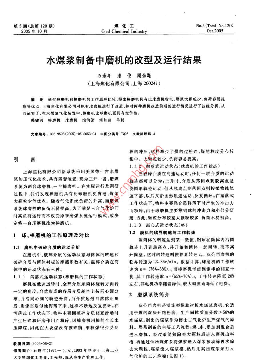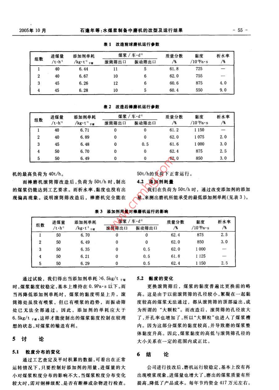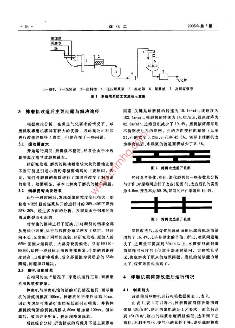水煤漿制備中磨機(jī)的改型及運(yùn)行結(jié)果