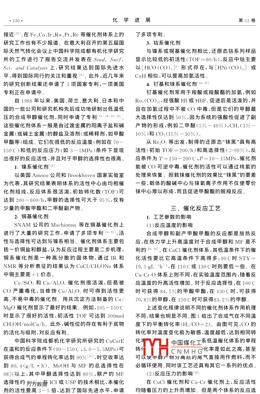 低溫甲醇液相合成催化劑及工藝的研究進(jìn)展