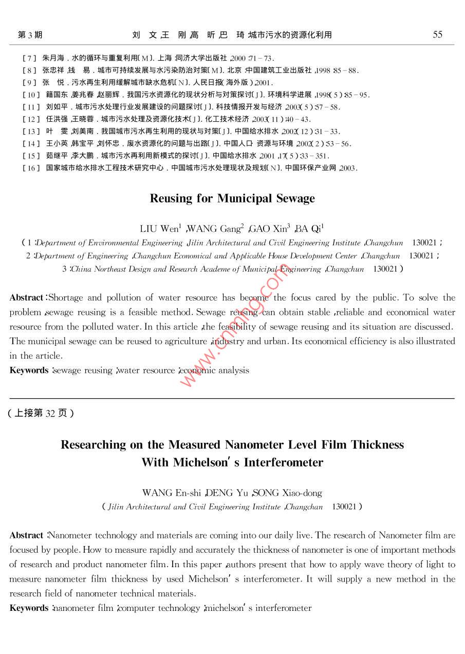 - 作者單位:吉林建筑工程學(xué)院環(huán)境工程系,長春市經(jīng)濟(jì)適用房發(fā)展中心工程部,中國市政工程東北設(shè)計研究院