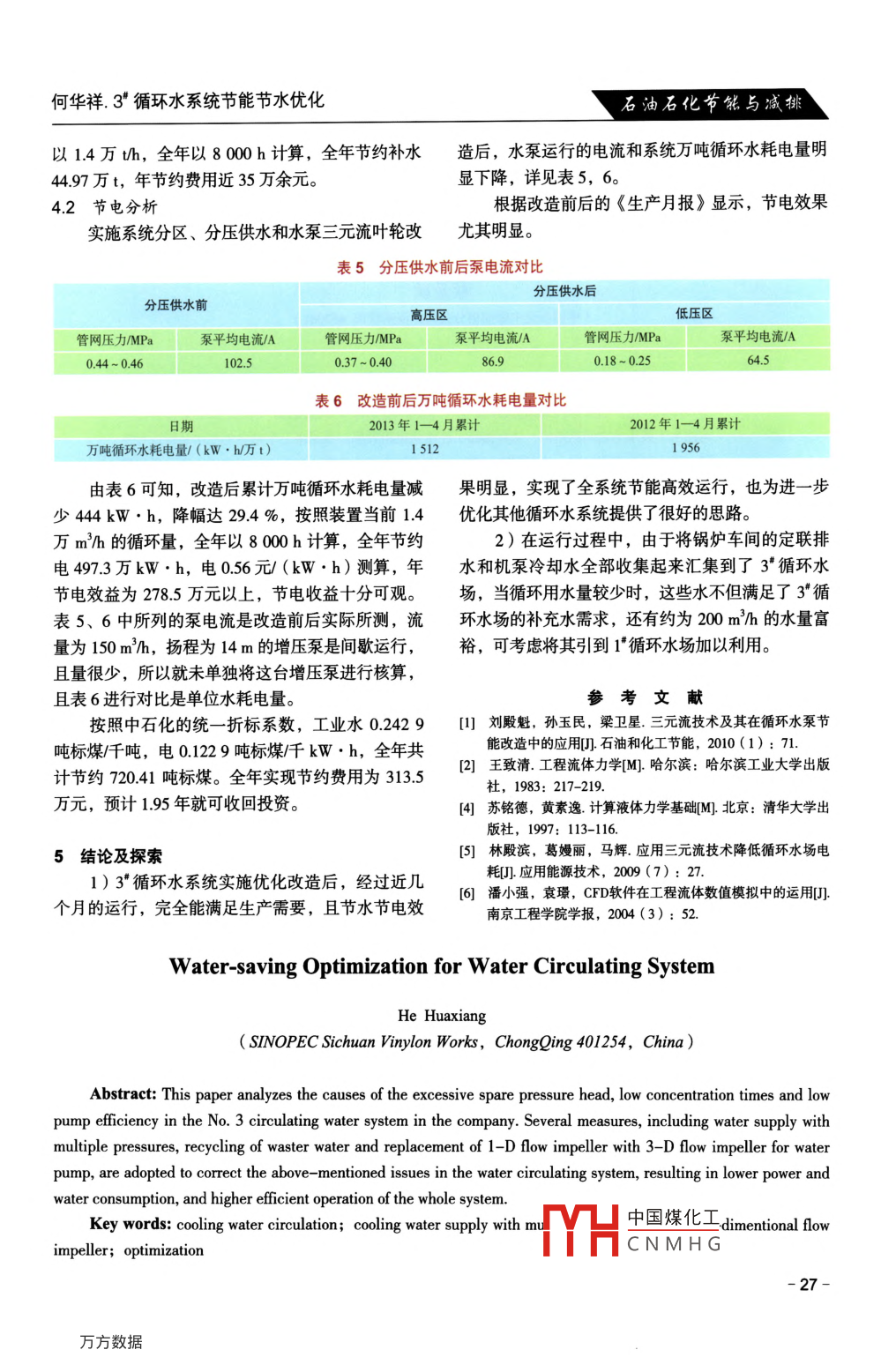 3#循環(huán)水系統(tǒng)節(jié)能節(jié)水優(yōu)化