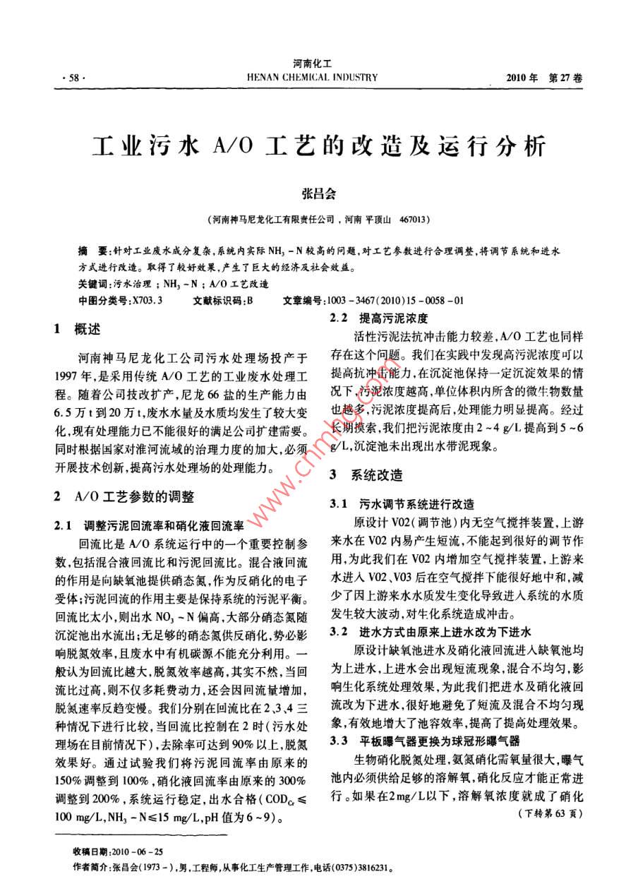 工業(yè)污水A/O工藝的改造及運(yùn)行分析