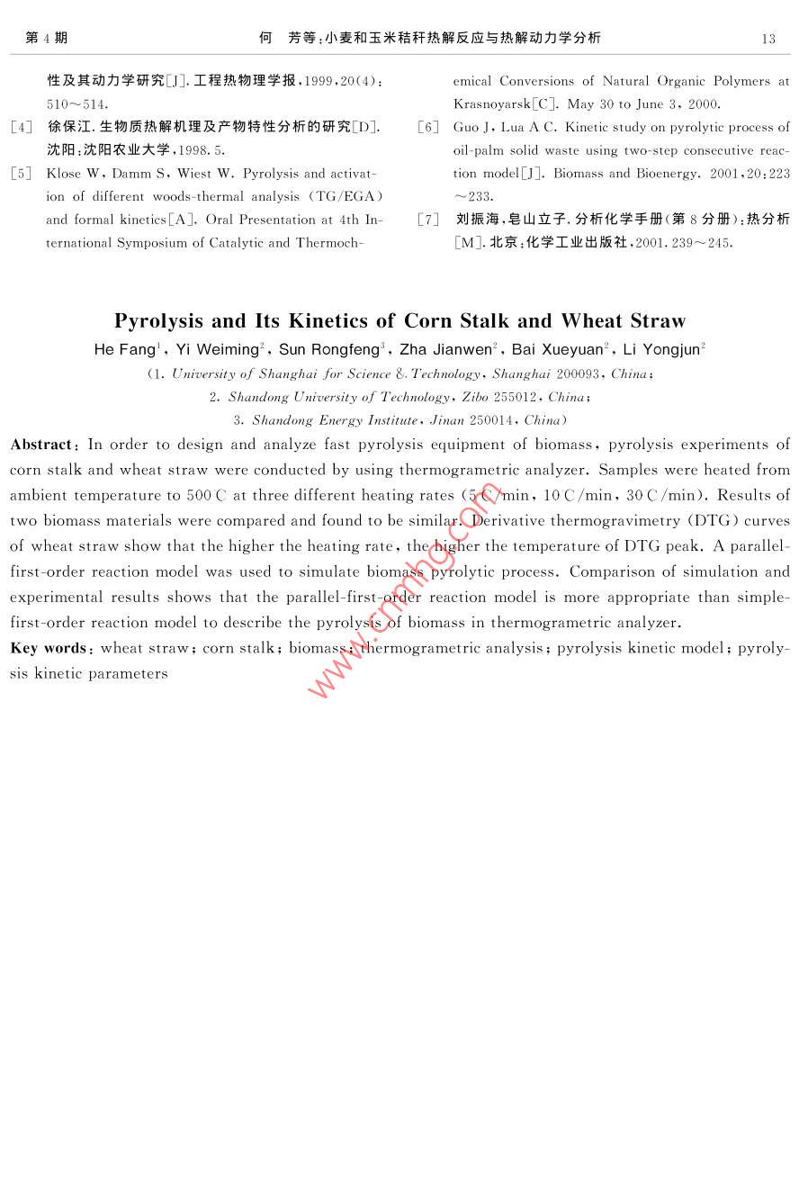 小麥和玉米秸稈熱解反應(yīng)與熱解動(dòng)力學(xué)分析