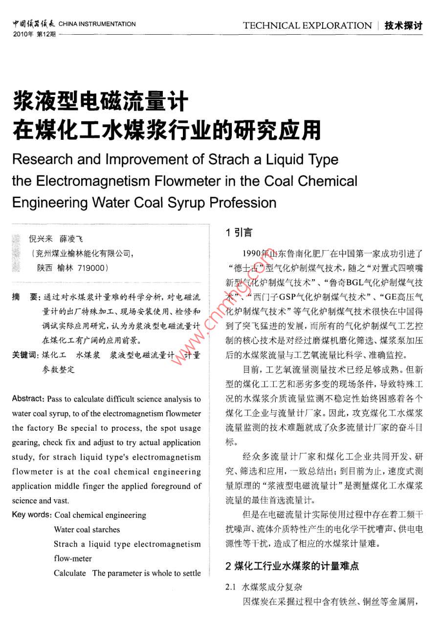 漿液型電磁流量計(jì)在煤化工水煤漿行業(yè)的研究應(yīng)用