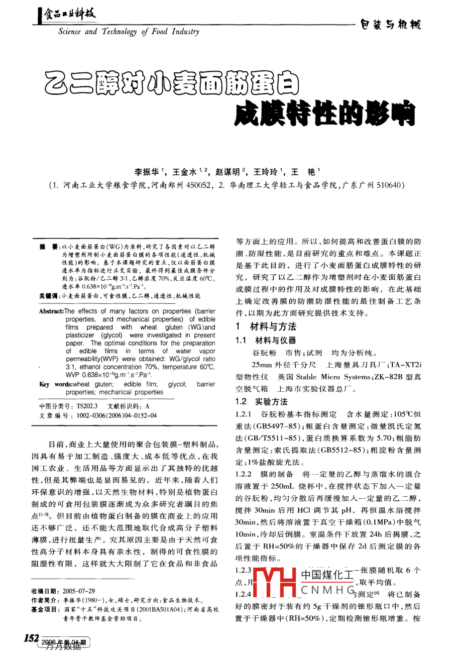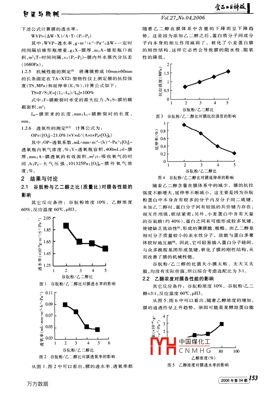 乙二醇對(duì)小麥面筋蛋白成膜特性的影響