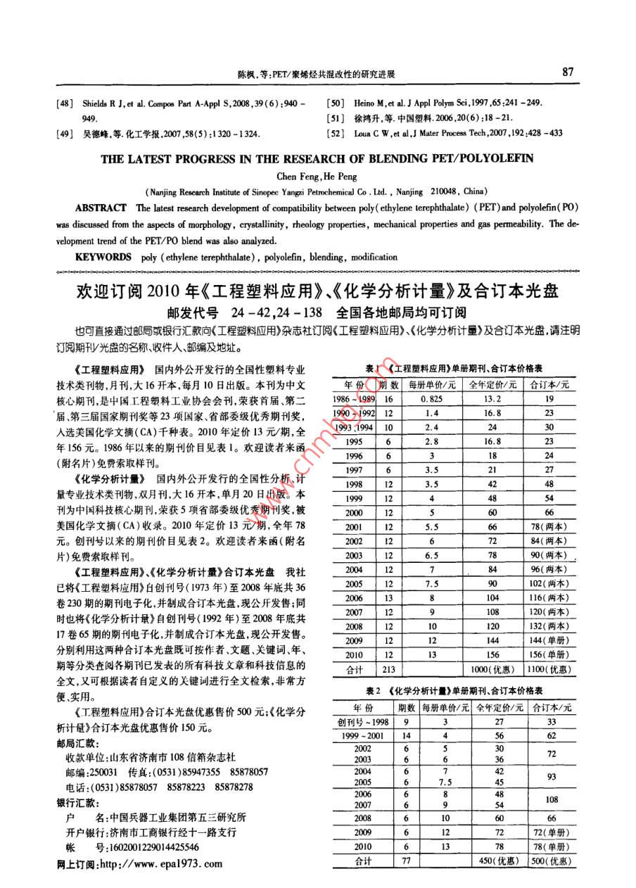 - 期刊名字:工程塑料應(yīng)用