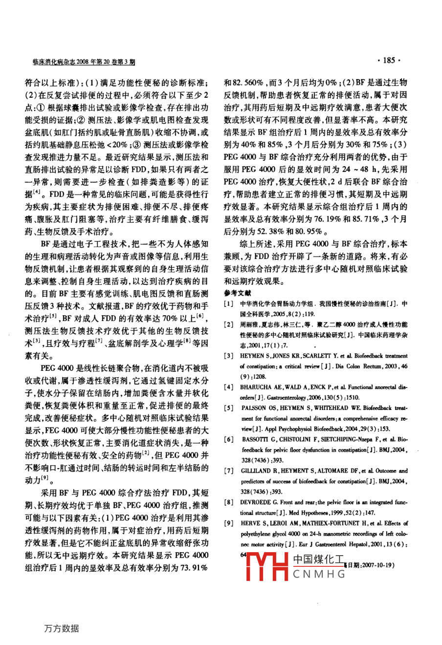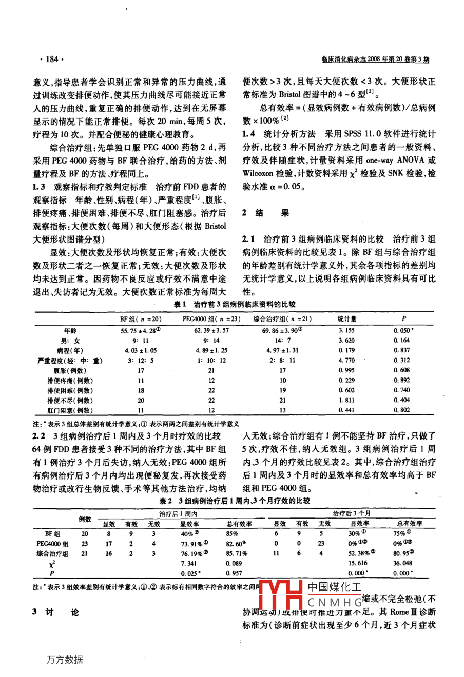 成人功能性排便障礙的生物反饋、聚乙二醇4000治療 成人功能性排便障礙的生物反饋、聚乙二醇4000治療
