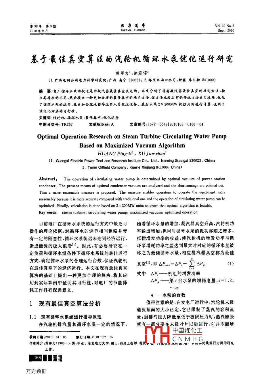 基于最佳真空算法的汽輪機(jī)循環(huán)水泵優(yōu)化運(yùn)行研究