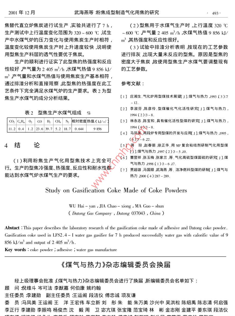 - 期刊名字:煤氣與熱力