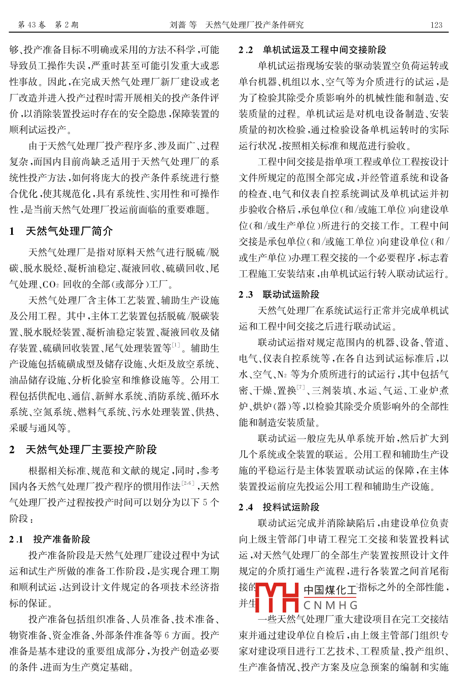 天然氣處理廠投產(chǎn)條件研究