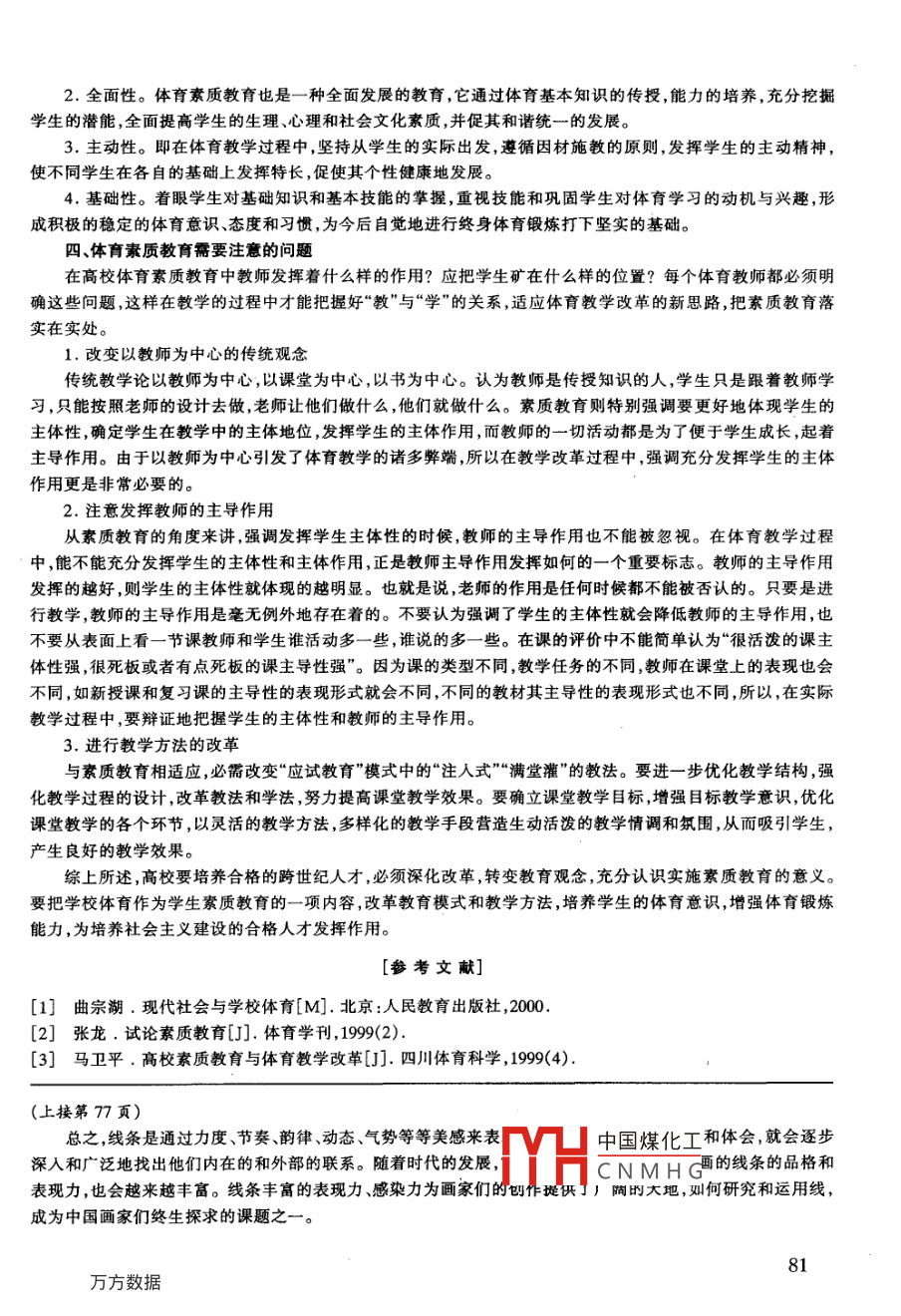 2001年8月陜西教育學(xué)院學(xué)報(bào)Aug.2001第17卷第3期Journal of Shaanxi Institute of EducationVol 17 No. 3線與中國畫郝亦均(陜西教育學(xué)院,陜西西安710061)摘要:線是中國畫造型的基本手段,在中國有悠久的歷史。不同的線,表現(xiàn)不同的對(duì)象,抒發(fā)不同的思想感情。關(guān)鍵詞:線;中國畫;表現(xiàn)手法中圖分類號(hào):J212文獻(xiàn)標(biāo)識(shí)碼:A文章編號(hào):1008-598X(2001)03-0076-03線是中國畫造型的基本手段。中國畫家利用毛筆的靈活變化,或抑揚(yáng)頓挫,或輕重緩急,或干濕濃淡,創(chuàng)造出富有魅力的千變?nèi)f化的線,表現(xiàn)不同的對(duì)象,抒發(fā)各自不同的思想感情。在畫家筆下,這些線條具有極強(qiáng)的生命力與藝術(shù)感染力,表達(dá)出不同的情感。不同的線形變化,蘊(yùn)含著不同的韻律美與節(jié)奏美,形成點(diǎn)線和水墨的協(xié)奏曲。線在幾何學(xué)上沒有粗細(xì)之分,只有長度和方向,即為點(diǎn)的方向性的運(yùn)動(dòng)軌跡。由于線具有的方向性,所以便產(chǎn)生了各種感覺:曲線為運(yùn)動(dòng)感,水平線為速度感,垂、斜直線為下落感、上升感。線的各種組合會(huì)產(chǎn)生各種不同形式的面與明暗調(diào)子等變化。線的速度大小、力度強(qiáng)弱,方向變換以及表現(xiàn)形式都受命于情感的支配,加上人們對(duì)線的心理印象,便使線有了許多情感內(nèi)涵。象感覺優(yōu)雅的線條,具有速度的線條,強(qiáng)勁的線條,圓滑的線條,單純的線條,復(fù)雜的線條等等。線的各種形態(tài)表達(dá)不同的情感特征,如:直線表現(xiàn)平靜、力量,具有男性的情感特征;曲線表現(xiàn)速度、動(dòng)力彈力,具有女性的情感特征等等。線以其具有的豐富的感染力和表現(xiàn)力,成為中國畫的主要造形手段,而且比西方繪畫發(fā)展得更加淋滴盡致。雖然西方有些畫家,也利用線條塑造、傳達(dá)感情,但他們更側(cè)重于表現(xiàn)質(zhì)感、量感、空間感。傳統(tǒng)西畫的線條,從屬于表現(xiàn)的對(duì)象,離開了所要表現(xiàn)的形體、結(jié)構(gòu)、明暗等具體內(nèi)容,線條自身便沒有獨(dú)立存在的價(jià)值,而在中國畫中,線本身是可以獨(dú)立存在的,線的作用并非僅限于表示輪廓,還可以表現(xiàn)“形、質(zhì)、動(dòng)”三者,詳細(xì)點(diǎn)說,就是關(guān)于空間,動(dòng)勢、質(zhì)感、凸凹、明暗甚至性格,并且在一筆之間可以兼有濃淡干濕之妙。古人說“下筆便有凸凹之形”,這好比是音樂旋律的進(jìn)行伴著輔佐的和聲似的,使筆端的情調(diào)更加豐富而復(fù)雜起來。在中國畫中,線描(白描)能成為一個(gè)獨(dú)立的畫種,必然有其優(yōu)勢和特殊性。我們知道,每一件繪畫作品均離不開構(gòu)圖、布勢、立體形象或與立體形象的襯托配置等等。白描作品在處理這些問題的同時(shí),卻不依賴于色彩的鋪陳,也不借助于明暗的輔助,僅僅是依靠線條布置的疏密,線形的粗細(xì)曲直,線質(zhì)的剛?cè)嵝旒?、力度的張弛、手法的頓挫等等去表現(xiàn)對(duì)象的形質(zhì)、情態(tài)、意趣、境界。因此,一張好的白描作品,是一首線的交響曲。這恰是它的特殊之處,也是它的優(yōu)勢所在,而且它在形式上,單純、明快、質(zhì)樸無華,作者在描繪的時(shí)候,可專注于形象和線的把握。其實(shí)人們每時(shí)每刻的思想感情不同,在線的運(yùn)用上,就會(huì)有不同的韻味。從用筆的韻味上來劃分:有的莊重典雅崇高,這要求作畫時(shí)注重骨力、氣魄神韻的表現(xiàn);有的酒脫職逸這類線條給人以活潑、輕松的情趣;有的剛健挺拔,充分體現(xiàn)豪放、雄渾、陽剛之美;有的渾厚蒼勁,要求線條沉著穩(wěn)重內(nèi)含豐富;有的質(zhì)樸天真了無人工雕琢的痕跡,是不做修飾的自然流露;有的古拙,指中國煤化工有的遒勁流暢,線條隨CNMHG收稿日期:2001-05-29作者筒介:郝亦均(1970-),男,陜西府谷人,陜西教育學(xué)院美術(shù)系教師。力的走勢,自由流動(dòng),如煙云舒卷,龍蛇出沒。大寫意的線,更是變化多端,可謂抑揚(yáng)頓挫、快慢虛實(shí)的線的舞蹈,與淋漓盡致的水墨運(yùn)用結(jié)合起來,就更加婆娑多姿,強(qiáng)烈地牽動(dòng)著觀者的思緒。自古以來,中國畫就把線作為造型的基本手段。由于考古工作的發(fā)展,我們有機(jī)會(huì)看到遠(yuǎn)古時(shí)代原始人最初的藝術(shù)品,他們在陶器上繪制了許多裝飾紋樣,如魚、人面、人們的集體舞蹈以及一些與他們生活密切相關(guān)的動(dòng)物等等。另外,還有繪制在巨大巖石上的巖圖。從這些遠(yuǎn)古的作品中,我們已經(jīng)可以看到以線條來描繪對(duì)象,成了原始人繪畫的基本手段。我們從許多壁畫、帛畫、畫像石、畫像磚及卷軸畫等繪畫作品中可以發(fā)現(xiàn),從秦漢到南北朝時(shí)期的用線,逐漸擺脫稚拙而走向成熟。由于造型能力的提高,繪畫所反映的面也越來越廣,加之書法藝術(shù)由篆隸向豐富多彩的行草發(fā)展,使繪畫的線條有起有收,流暢自如,能較恰當(dāng)?shù)乇憩F(xiàn)人物衣紋的質(zhì)感和動(dòng)感。顧愷之所作的《洛神賦圖》和《女史箴圖》代表了當(dāng)時(shí)線條的水平和特點(diǎn)。他的線條勻細(xì)流暢,富有彈性,生動(dòng)地表現(xiàn)了當(dāng)時(shí)的人物穿長袍、拖長裙的衣著特點(diǎn),人們把他的線