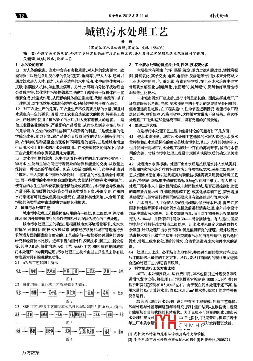 12民營輯故2012年第11期科技論壇城鎮(zhèn)污水處理工藝張燕(黑龍江省八五四農場,黑龍江虎林158403)摘要:介紹了污水的危害,介紹了多種常見的城市污水處理工藝,并對各種工藝流程及適應范圍進行了說明。關鍵詞:城鎮(zhèn);污水;處理工藝1水污染的危害3工業(yè)廢水處理的特點是:針對性強技術變化多11對人體的危害。當水中含有有害物質量對人體的危害更大。致主耍技術有隔油、氣浮、混凝沉淀、重力過濾和膜過濾活性炭吸癌物質可以通過食用受污染的食物(蔬菜、魚肉等),帶人人體還可以附、臭氧氧化離子交換電解、電滲析反滲透等專用技術來分離減少通過飲水進入人體。此外,人在不潔凈的水中活動水中病原體亦可經工業(yè)廢水中的油、色、重金屬有毒有害物質在工業(yè)廢水治理中也常皮膚、黏膜侵人機體如血吸蟲病等。另外,水環(huán)境內分泌于擾物質也常用到水解酸化、接觸氧化、表面曝氣、純氧曝氣厭氧和好氧活性污會造成危害如化學性污染物鄰苯二甲酸二丁酯等可干擾機體內一些泥法等生化技術。激素合成代謝或作用,從而影響機體的正常生理代謝、生殖等。基于座城市污水廠建成后,運行時間是很長的。因此選擇處理廠廠上述原因,對生活飲用水源的保護在水環(huán)境保護中居于核心地位。址應著眼長遠考慮。當然要求預測三四十年后的發(fā)展情況是困難的,12對工農業(yè)生產的危害。工農業(yè)生產不僅需要足夠的水量而且對但希望遠離住宅區(qū)。在工程實施中往為節(jié)省近期投資希望污水廠距水質也有一定的要求。否則對工農業(yè)會造成很大的損失特別是工農居區(qū)近些,總管短些投資可省些這樣做常常帶來不良后果。在選擇業(yè)生產過程中使用了被污染了的水后,對人類有著極大的危害。一是處理理廠廠址時應盡量遠離市區(qū)并留有充裕的擴展余地。使工業(yè)設備受到破壞,嚴重影響產品質量,從而涉及到企業(yè)在市場上4處理工藝選擇的競爭能力企業(yè)的經濟利益和廣大消費者的利益;二是使土壤的化在選擇污水處理工藝過程中經常討論的問題有如下幾方面:學成分改變肥力下降,農產品也會直接或間接的受到不同程度的污41進水水質預測。城市污水處理工藝選擇的水質因素進水水質水染,農作物的品種甚至會出現(xiàn)各種不同程度的變異;三是使城市增加量特性和出水水質標準的確定是城市污水處理工藝選擇的關鍵環(huán)節(jié),生活用水和工業(yè)用水的污水處理費用。在水資源貧乏的情況下保證也是我國當前城市污水處理工程設計中存在的薄弱環(huán)節(jié)。城市污水管工業(yè)農業(yè)用水的水質就顯得尤為重要。網(wǎng)的完善,對城市污水處理工程設計規(guī)模和實際水質的確定至關重13對水生生物的危害。水中生活著各種各樣的水生動物和植物。生要。物與水生物與生物之間進行著復雜的物質和能量的交換從數(shù)量上42處理出水水質標準。處理廠出水水質是按照尾水排入水域類別保持著一種動態(tài)的平衡關系。但在人類活動的影響下這種平衡遭到再依照國家污水綜合排放標準以滿足各項指標要求。采用二級處理工破壞。當人類向水中排放污染物時,一些有益的水生生物會中毒死藝,處理出水恐怕難以達到氨氮與磷酸鹽標準需要采用脫氮除磷工藝亡,而一些耐污的水生生物會加劇繁殖大量消耗溶解在水中的氧氣,流程特別是級標準中磷酸鹽指標05mg有相當難度。有人提出,使有益的水生生物因缺氧被迫遷棲他處或者死亡。水污染會導致魚類處理廠尾水排入非蓄水性河流或非封閉性水域,是否還要控制如此低產量下降,長期緩慢的水污染會導致魚類質量下降,外形變異,嚴重的的磷酸鹽含量。采用生物脫氮除磷工藝,或者化學除磷工藝需要增加水污染還有可能造成魚類柏大量死亡,甚至種類性滅絕,人食用了受基建投資與經常運行費用同時還要求具有較高的運行管理水平。魚類導致中毒或健康方面的其他損害。43污水消毒。為了保護人類的生命健康保護好水環(huán)境,世界許多鎮(zhèn)污水處理工藝國家和地區(qū)都要求對城市污水在排放前進行消毒處理。室外排水設計城市污水處理工藝目前仍在應用的有一級處理、二級處理深度處規(guī)范中城市污水處理廠出水要加氯消毒而且對生物處理后投氯量規(guī)理但國內外最普遍流行的是以傳統(tǒng)活性污泥法為核心的二級處理。定為5-10mg/L,并設停留時間為3min混合接觸池。有人提出國家城市污水處理工藝的確定是根據(jù)城市水環(huán)境質量要求來水水污水綜合排放標準對城市二級處理廠出水水質未確定大腸菌群數(shù)及質情況,可供利用的技術發(fā)展狀態(tài)城市經濟狀況和城市管理運行要余氯值所以處理廠出水要不要加氯是值得研究的課題。紫外線污水求等諸方面的因素綜合確定的。工藝確定前一般都要經過周密的調查消毒技術如今已被廣泛應用于各類城市污水的消毒處理中包括低質研究和經濟技術比較。近年來借助國外許多新技術新工藝、新設備污水、常規(guī)二級生化處理后的污水、合流管道溢流廢水和再生水的消等,其中AB法氧化溝法、AO工藝、MAO工藝SBR法在我國城市毒。污水處理廠中均得到應用污水處理工藝技術由過去只注重去除有機44處理工藝比選。必須結合當?shù)貙嶋H,并經過全面的技術