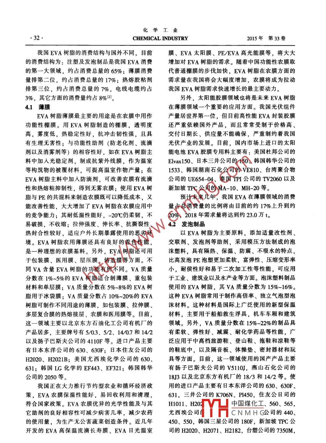 我國(guó)乙烯-醋酸乙烯共聚樹脂的市場(chǎng)分析