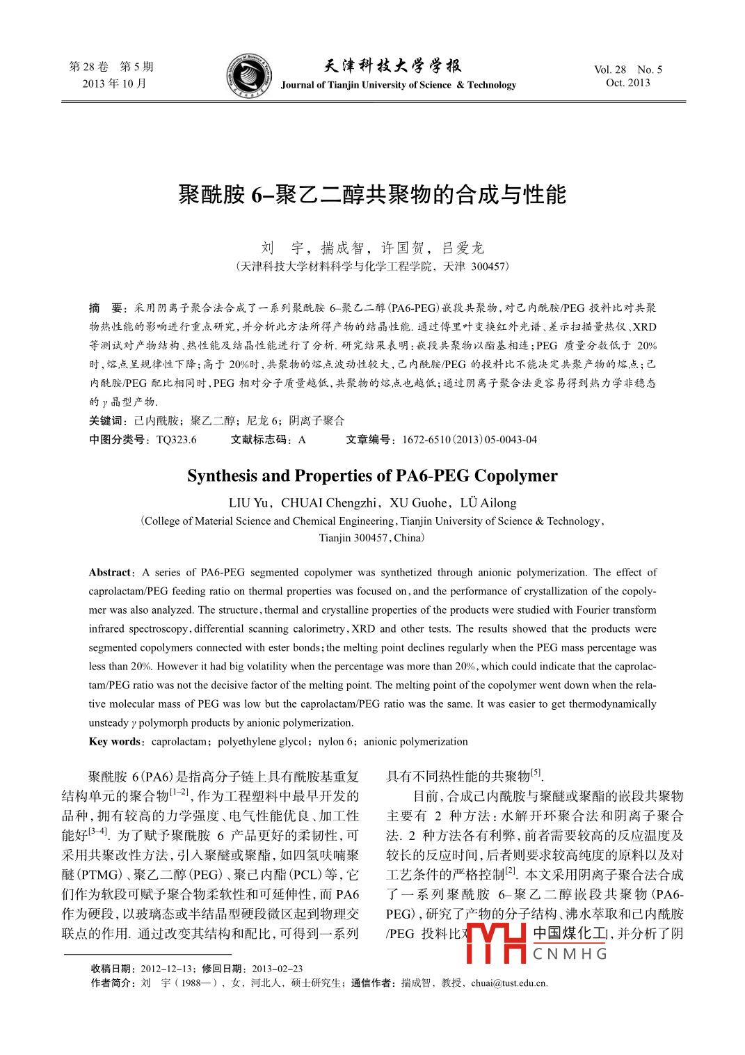 - 作者單位:天津科技大學(xué)材料科學(xué)與化學(xué)工程學(xué)院