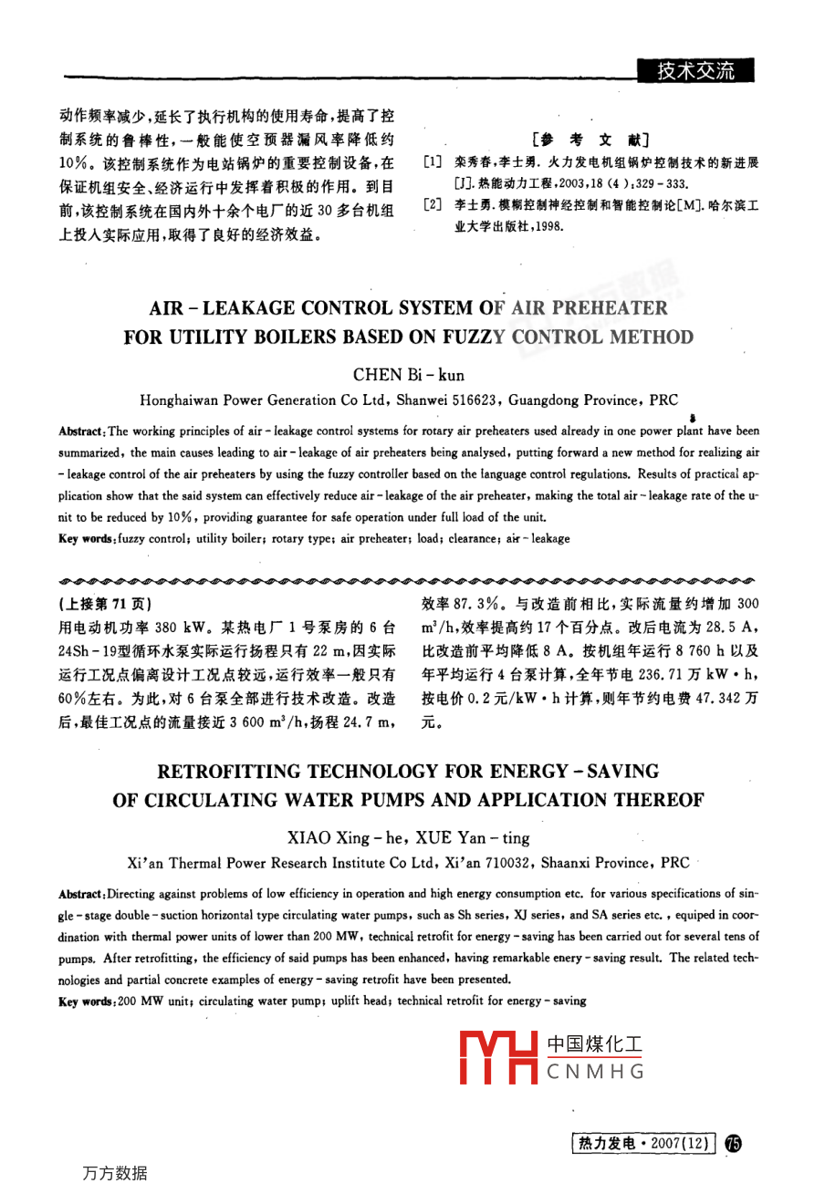 - 期刊名字:熱力發(fā)電